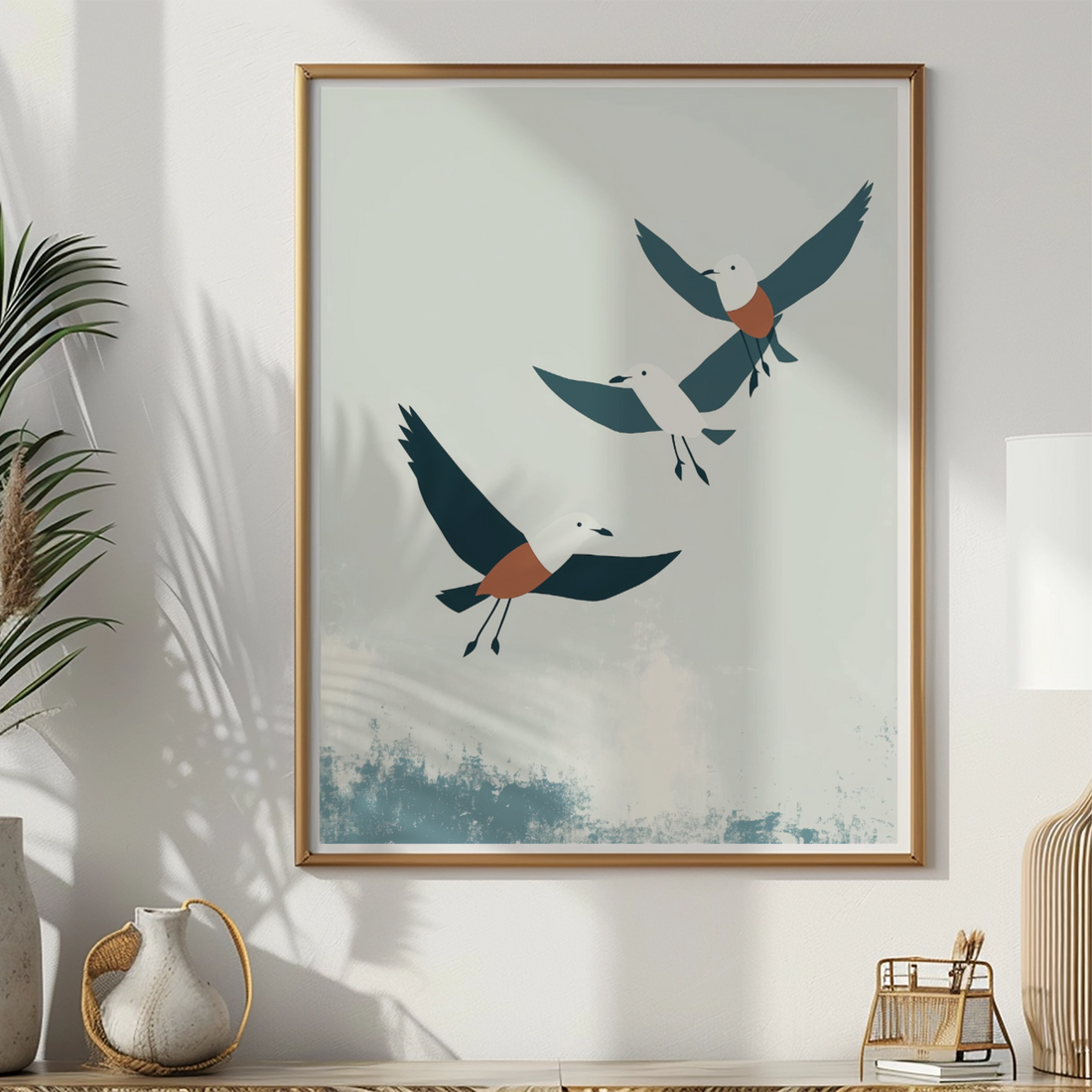 Serene Flight: Aesthetic Painting of Circling Seagulls in a Calm Sky. High Resolution Digital Download 300 DPI