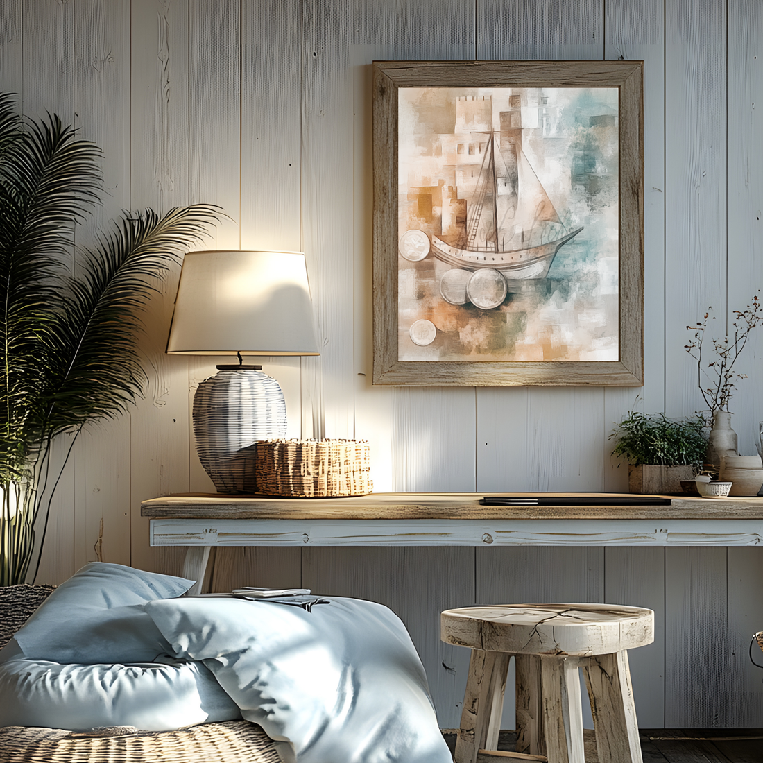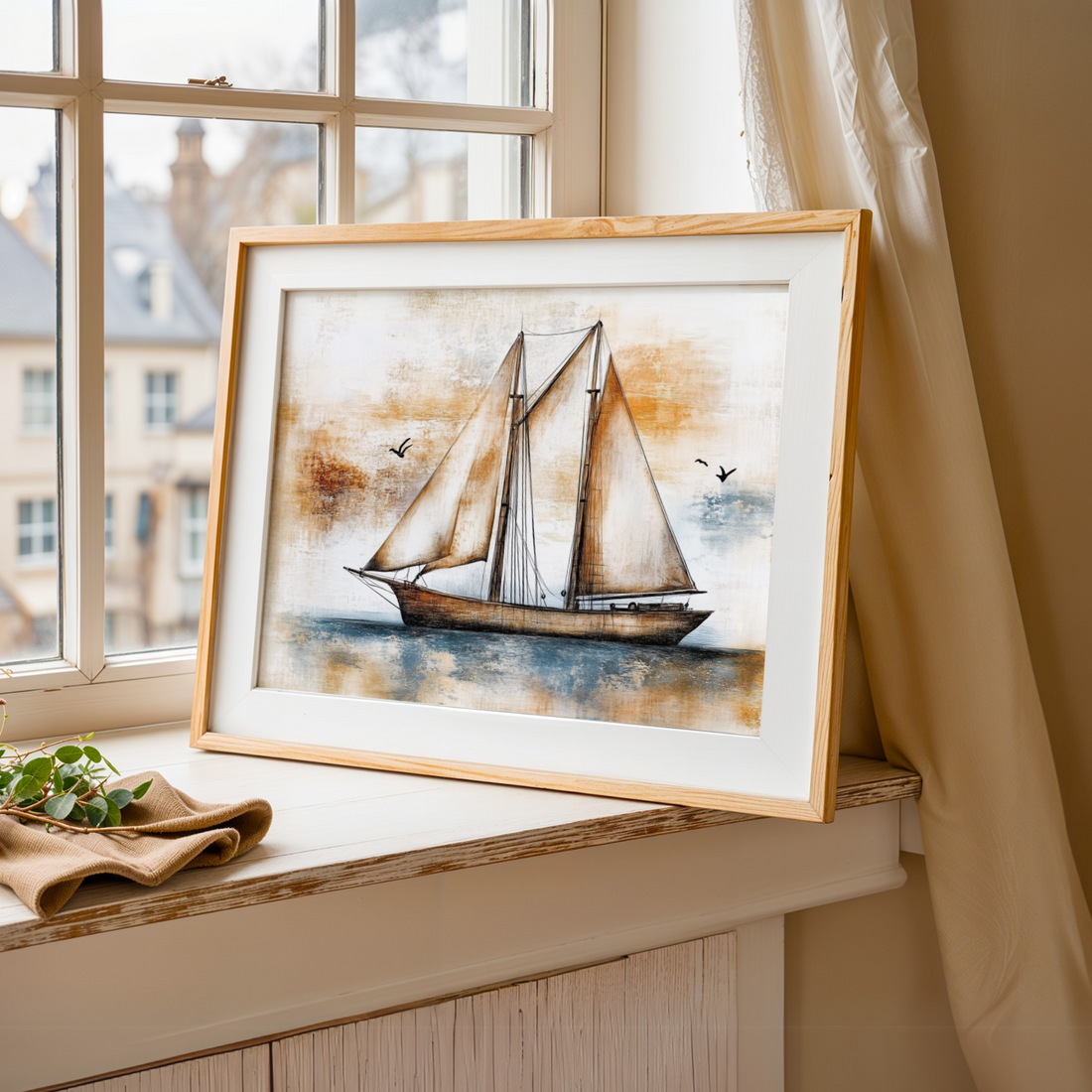 Vintage Wooden Sailing Ship Wall Art Nautical Rustic Ocean Decor. High Resolution Digital Download 300 DPI.