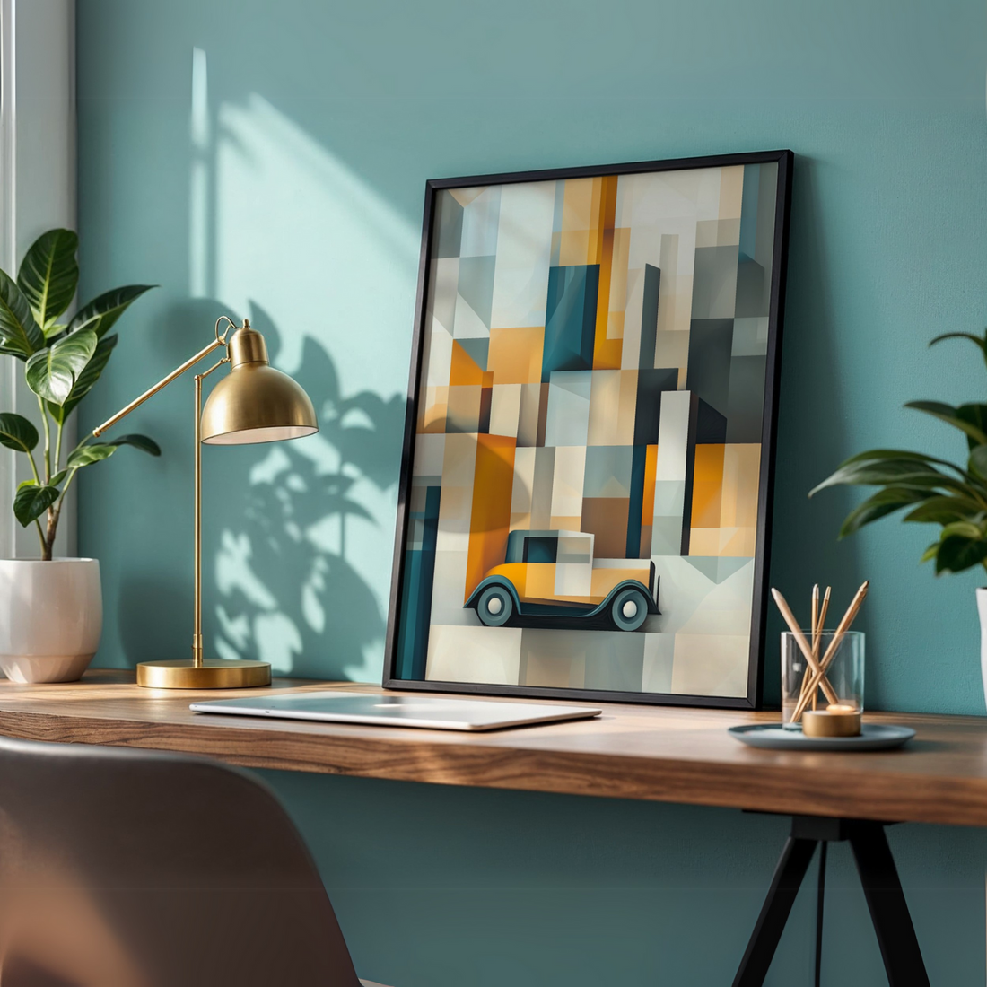 Transform your space with our striking geometric vintage car wall art. This unique piece blends...