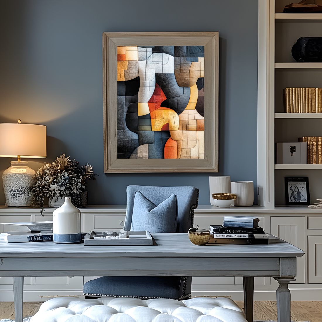 Modern Geometric Abstract Quilt Wall Art in Wool Felt Leather. High Resolution Digital Download 300 DPI.