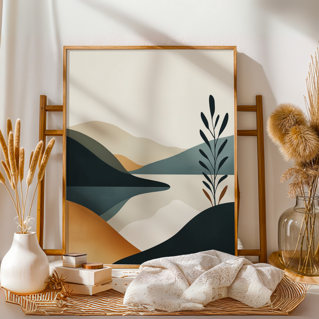 Serene Minimalist Landscape Wall Art: Pastel Hills and Calm Lake. High Resolution Digital Download 300 DPI.