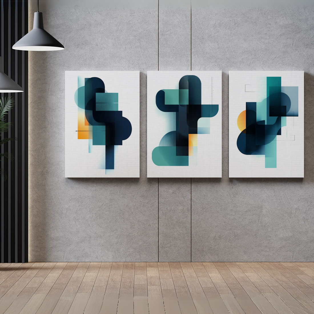Dynamic Geometric Art: Vibrant Shapes in Orange, Blue, and Green for Creative Spaces. High Resolution Digital Download 300 DPI