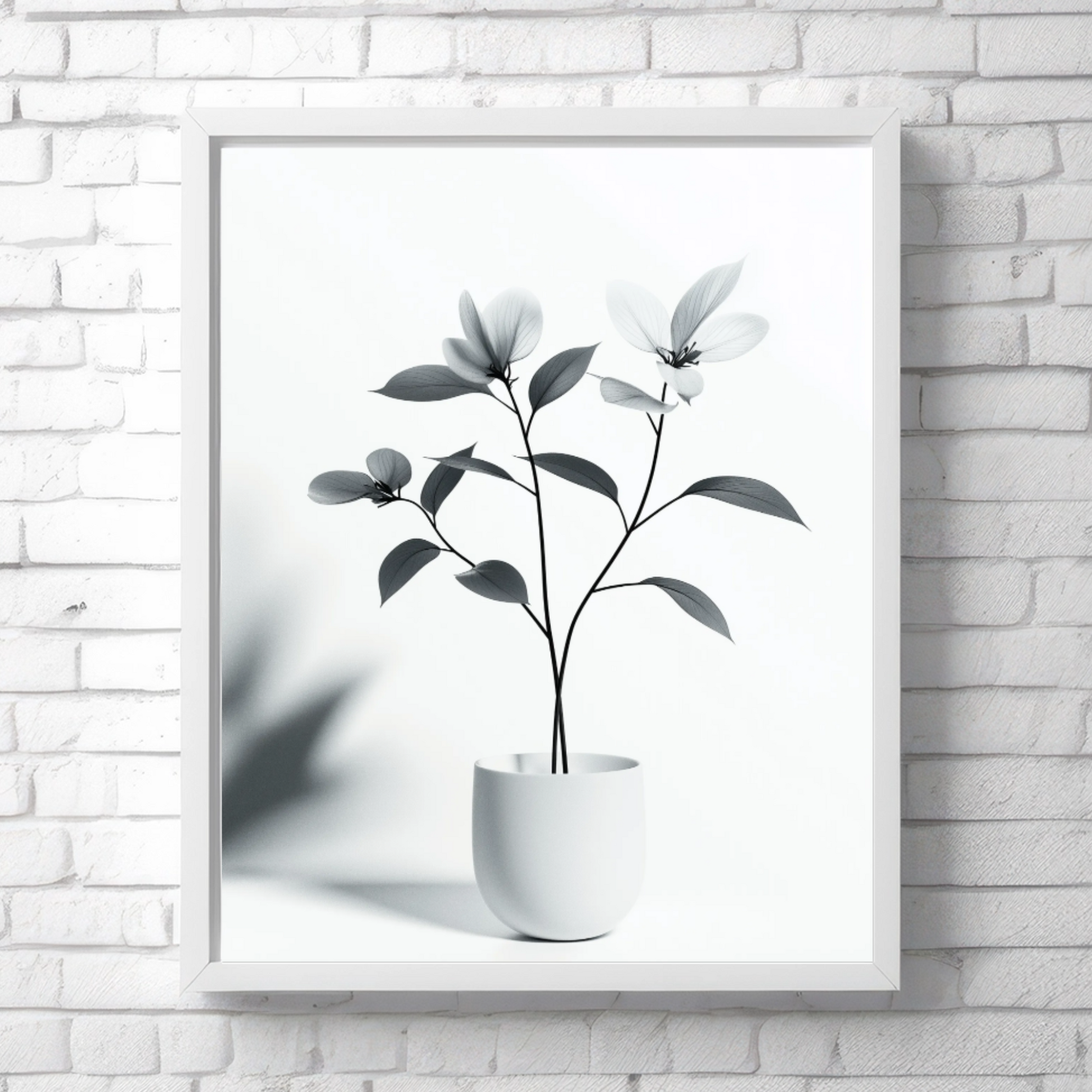 Timeless Elegance: Black and White Plant Art with Soft Focus Background. High Resolution Digital Download 300 DPI