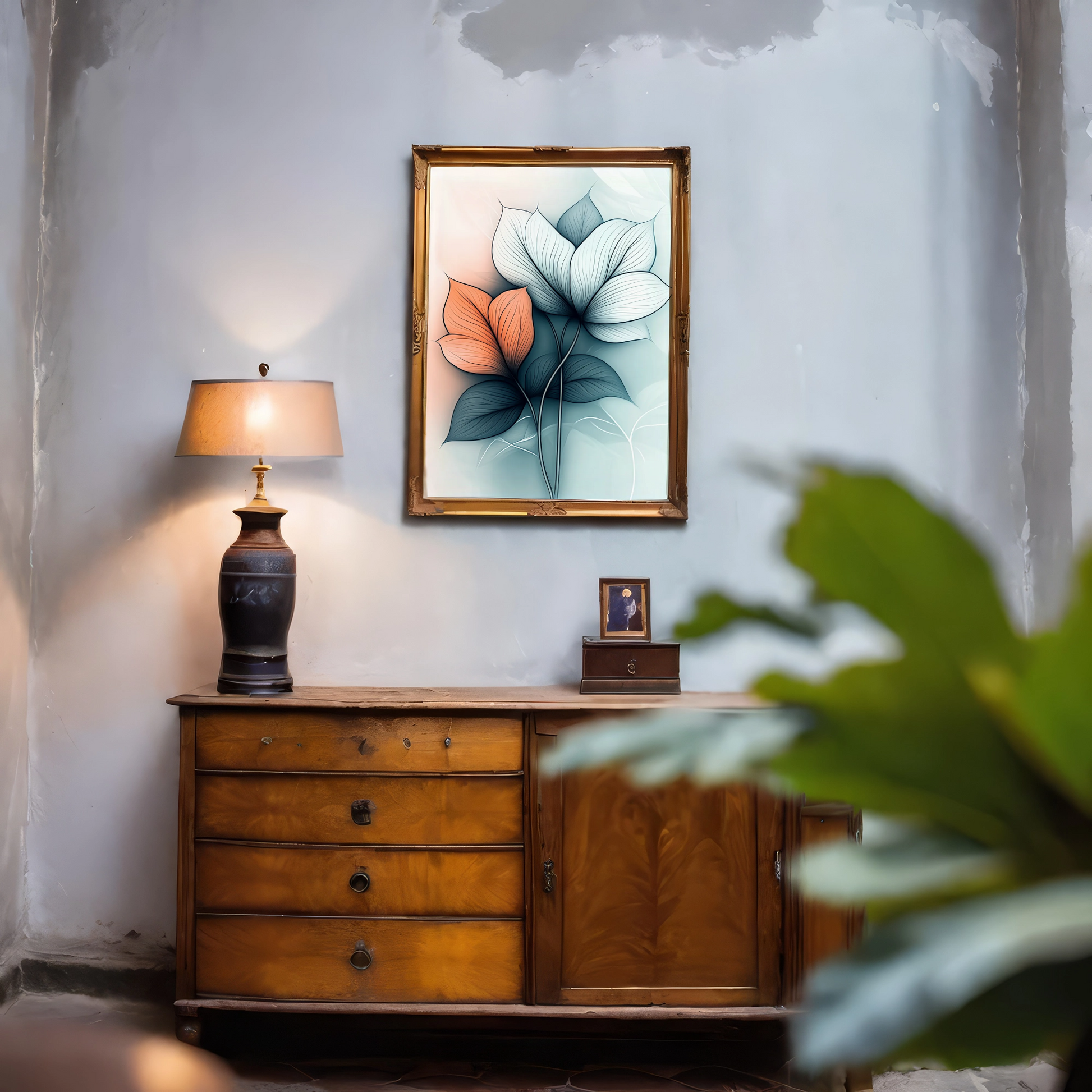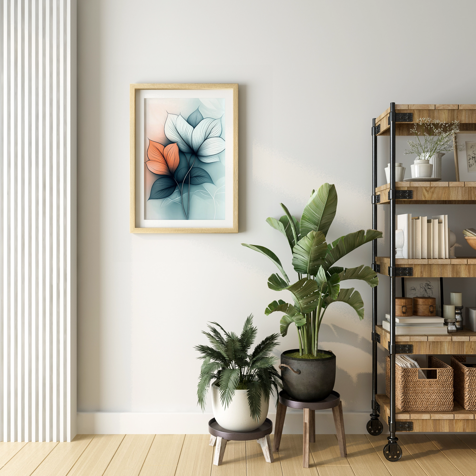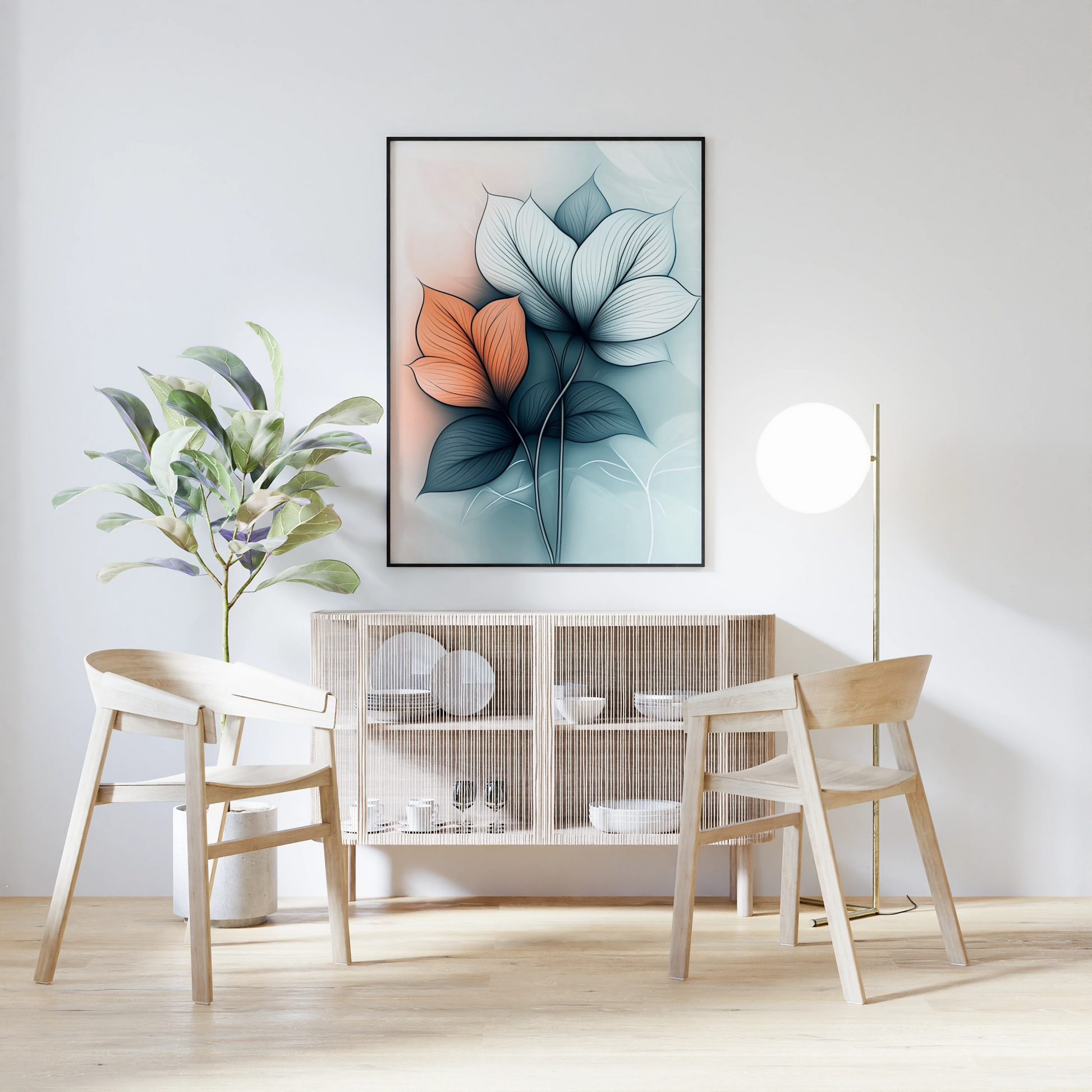 Elevate your space with our captivating abstract botanical boho artwork. This piece seamlessly blends minimalist design with a bohemian spirit, featuring clean lines that create a striking yet soothing composition. The soft color palette adds a touch of tranquility, perfect for creating a calm and inviting atmosphere in any room. Ideal for modern interiors, this artwork brings a contemporary twist to botanical themes, appealing to those who appreciate both nature-inspired and abstract designs. Whether displayed in a living area, bedroom, or office, this minimalist boho piece adds a sophisticated and serene element to your decor.