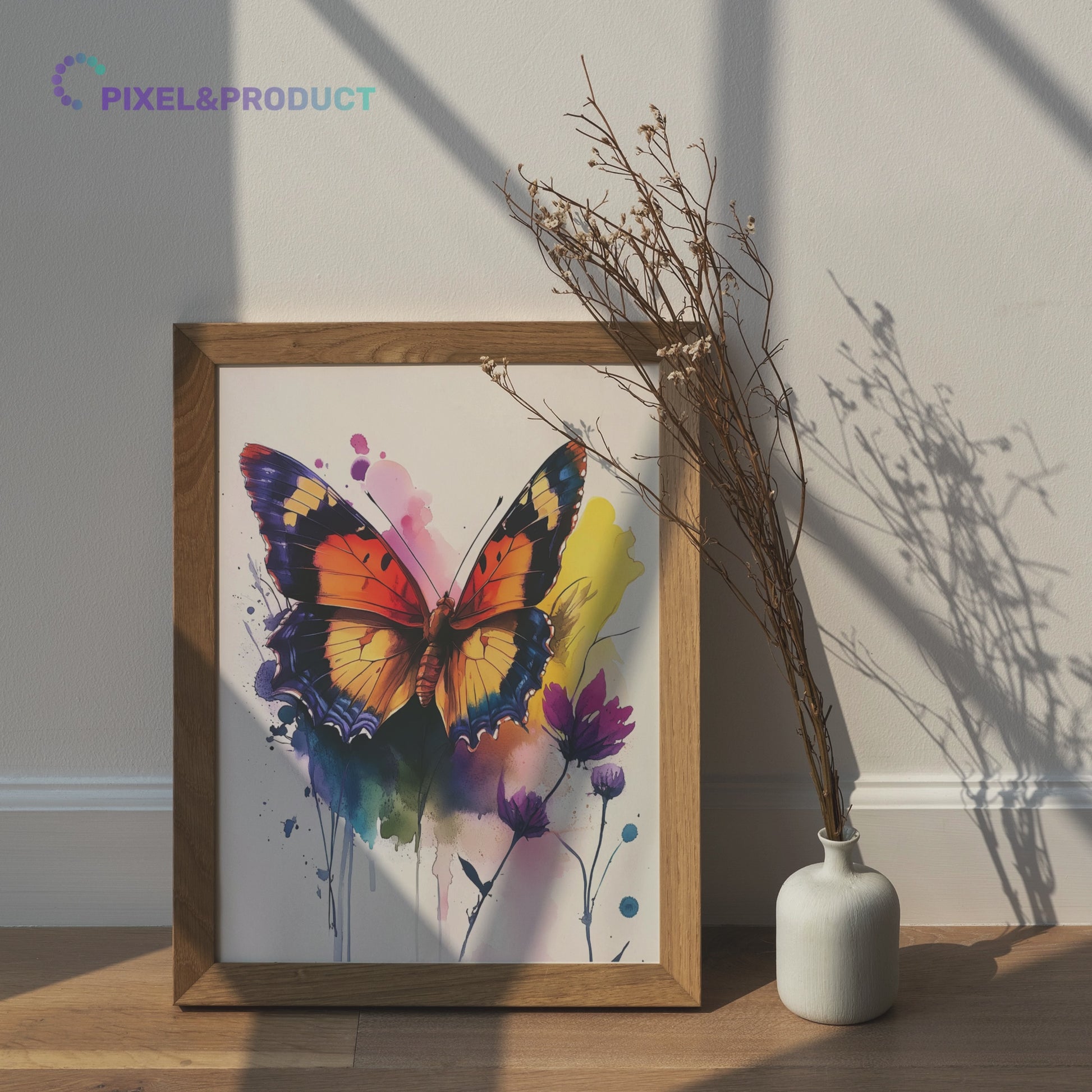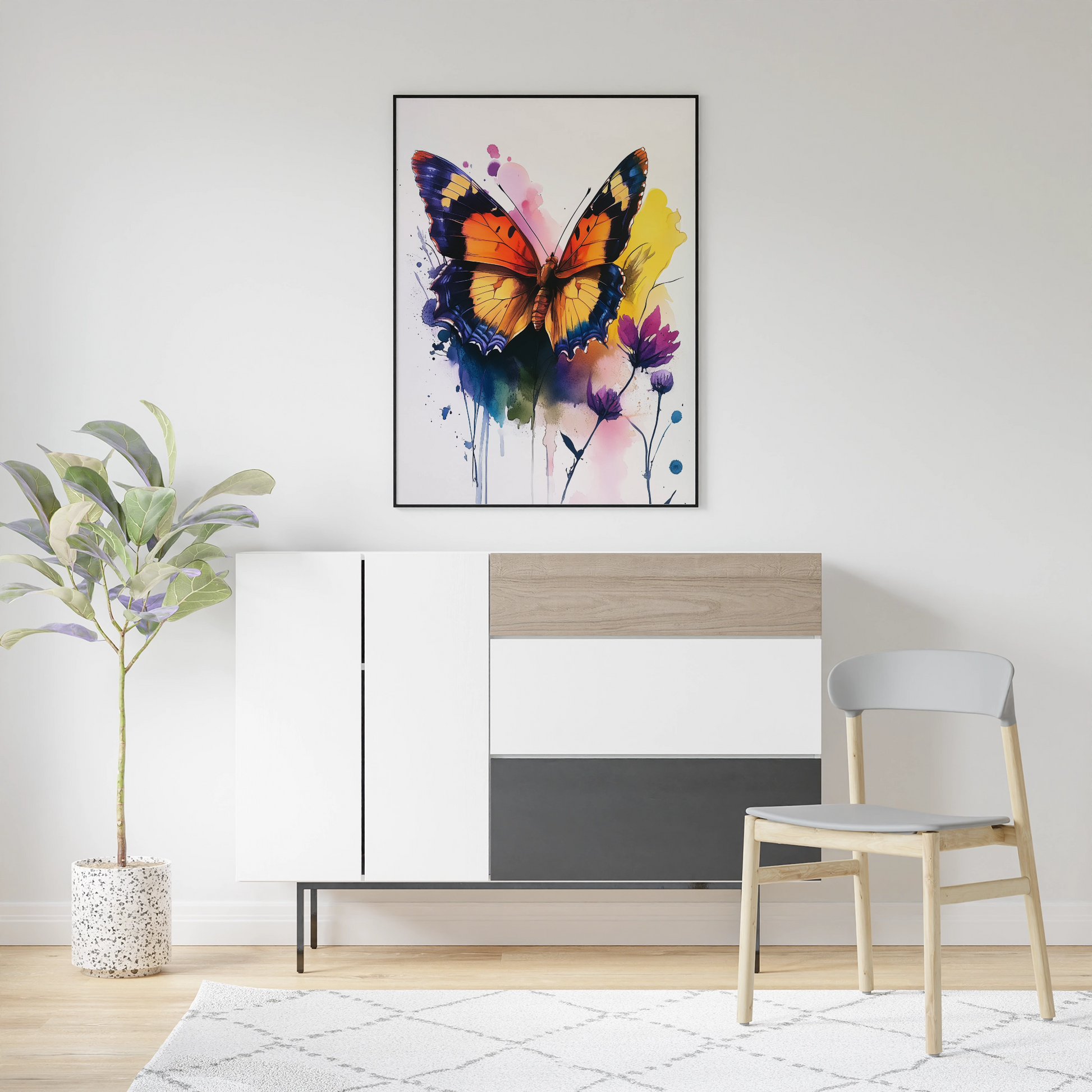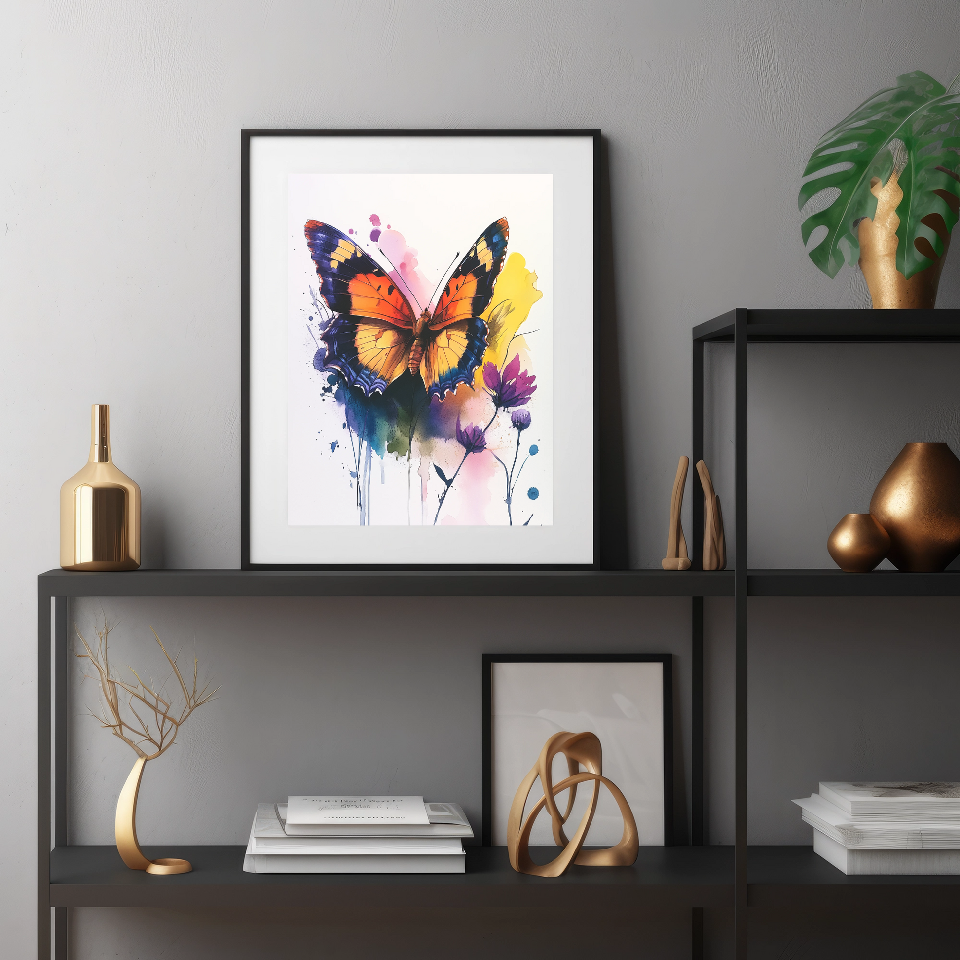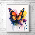 Bring a burst of color and life to your space with our stunning watercolor painting of a vibrant butterfly. This captivating artwork showcases a majestic butterfly with wings adorned in rich orange, deep black, and brilliant blue hues. Set against a dynamic background of splattered paint in various colors, this piece creates a mesmerizing interplay of structured beauty and artistic spontaneity. Perfect for nature lovers, art enthusiasts, and those seeking to add a touch of whimsy to their decor, this butterfly painting transforms any room into a vibrant gallery. Whether displayed in a living area, bedroom, or office, this watercolor masterpiece brings the delicate charm of butterflies and the expressive freedom of splatter art together in one unforgettable visual experience.