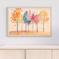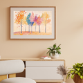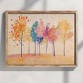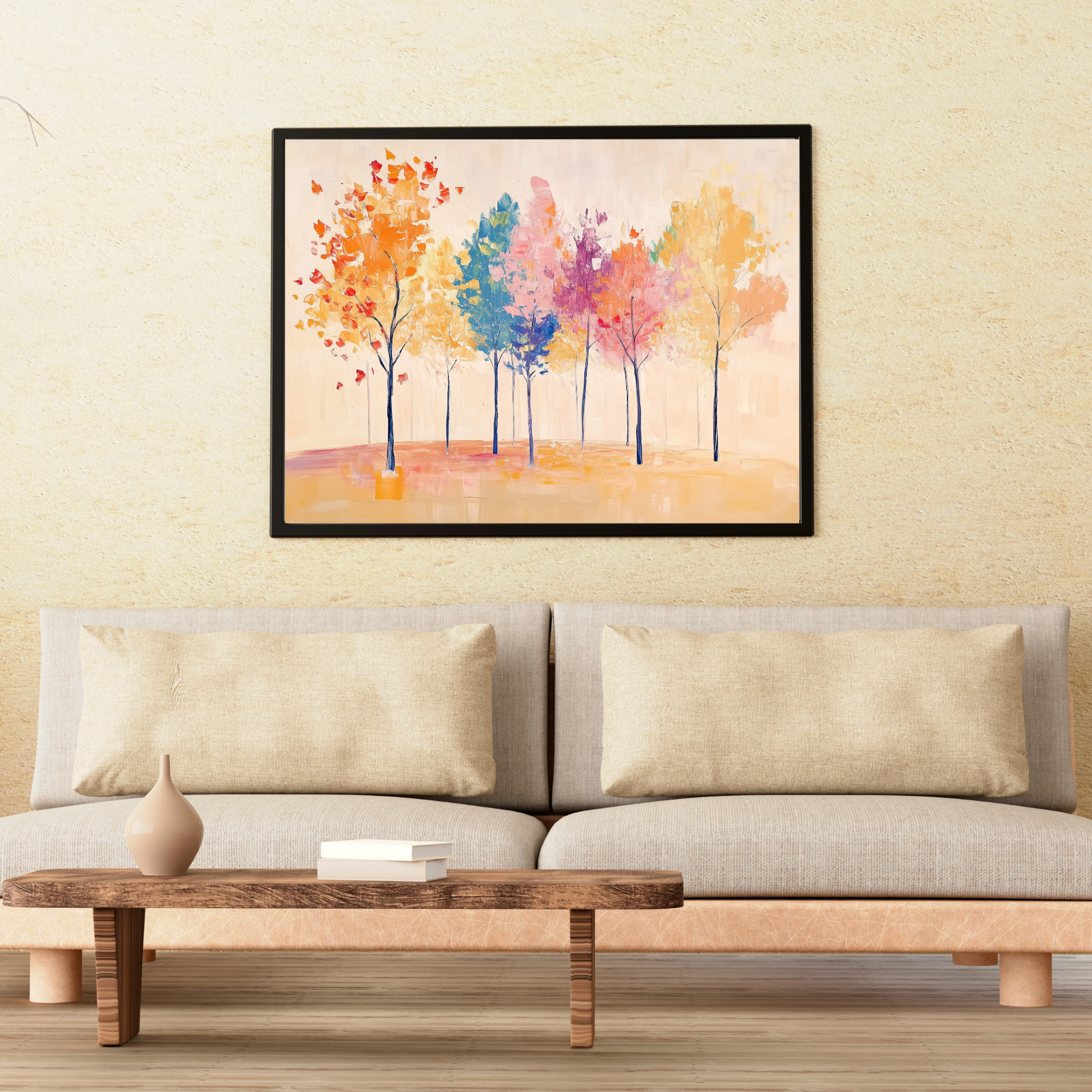 Immerse yourself in the breathtaking beauty of our stunning wall art capturing the essence of an autumn forest. This captivating piece showcases a mesmerizing landscape of trees adorned in vibrant shades of orange, yellow, pink, and blue, creating a kaleidoscope of color against a warm, inviting background. Perfect for nature lovers and art enthusiasts, this artwork brings the magic of fall into your space, adding depth, warmth, and visual excitement to any room. Ideal for living rooms, offices, or creative spaces, this piece transforms your decor with its rich, dynamic palette and serene forest scene.