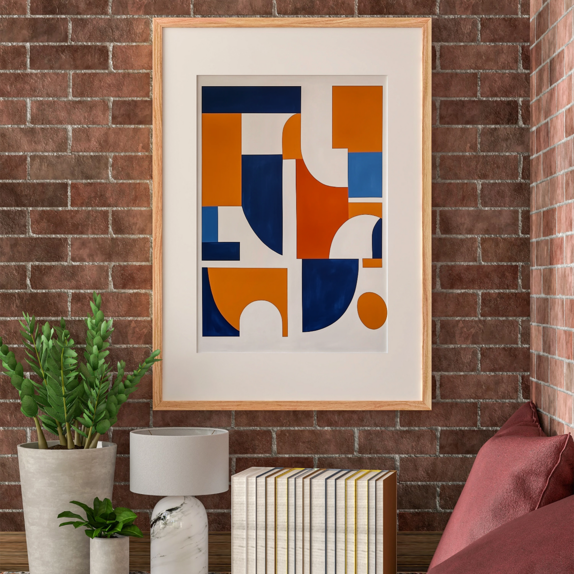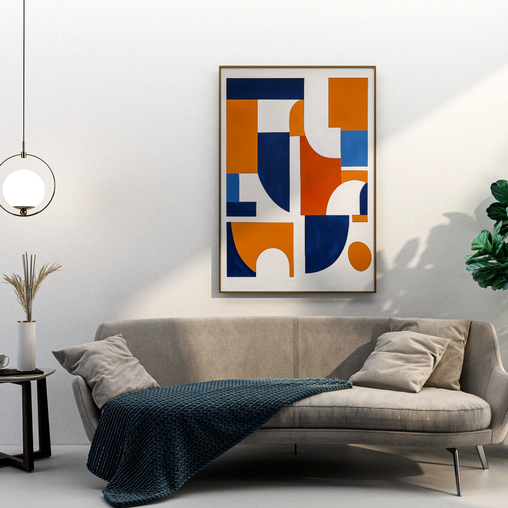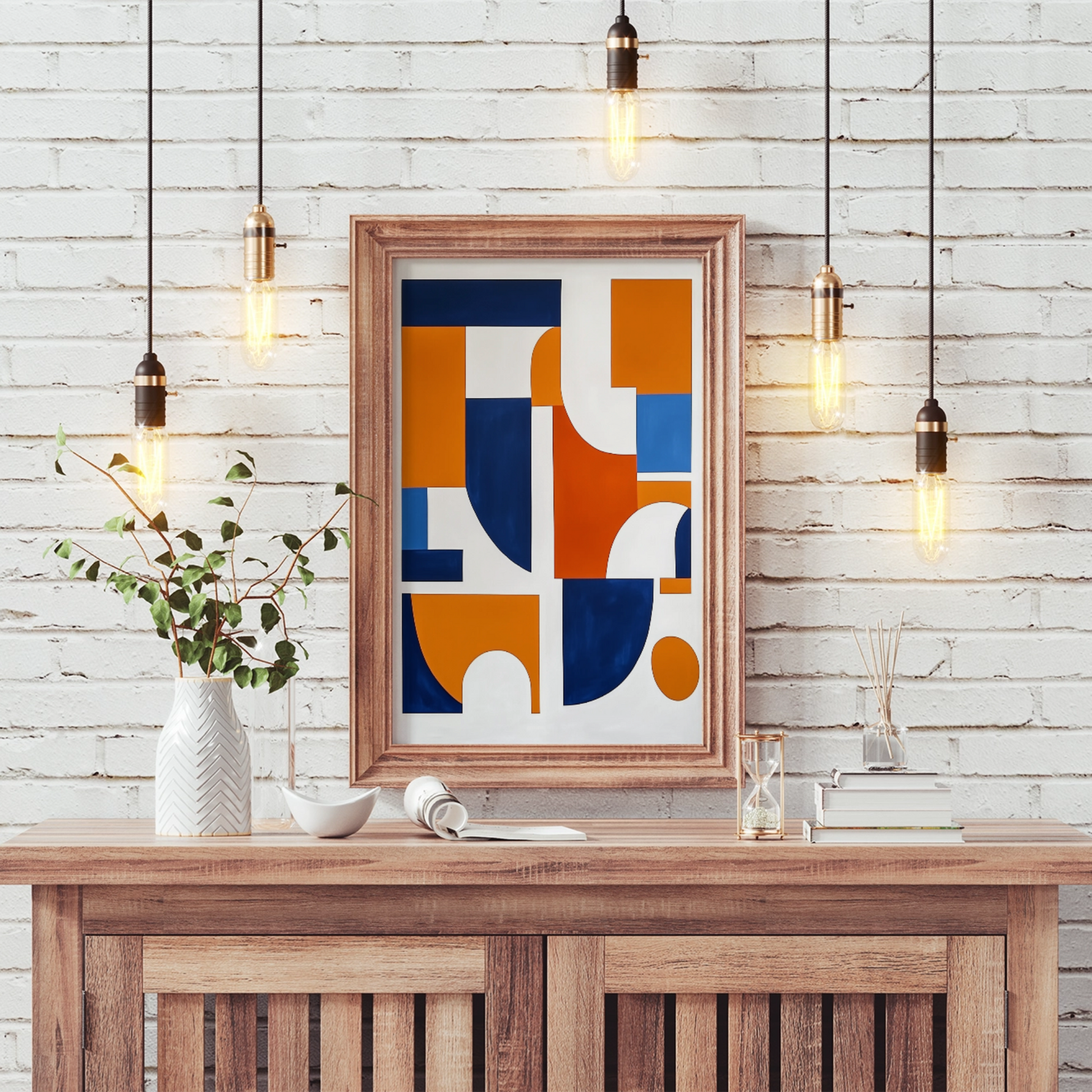Vibrant Simplicity: Abstract Orange, White, and Blue Shapes on White Canvas. High Resolution Digital Download 300 DPI