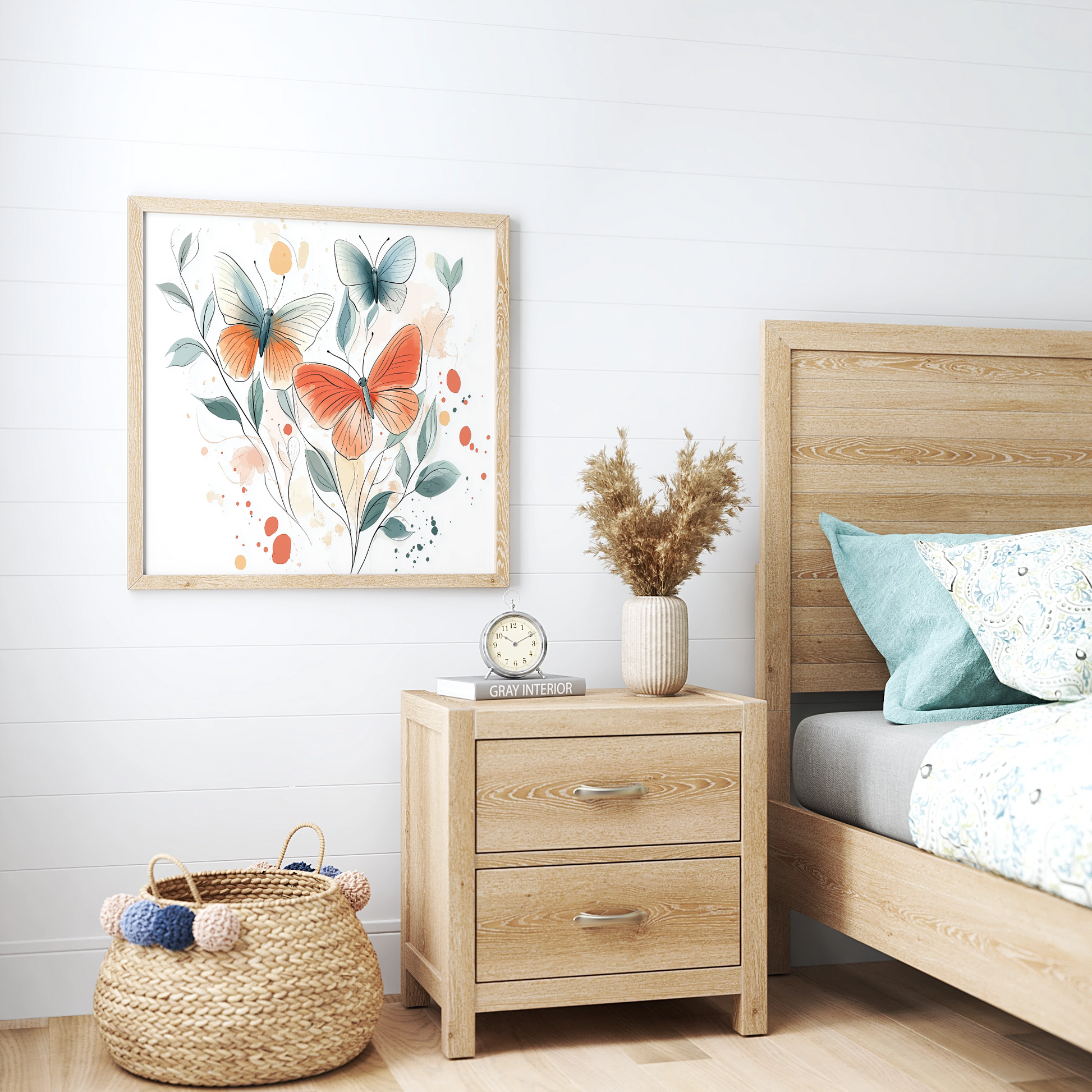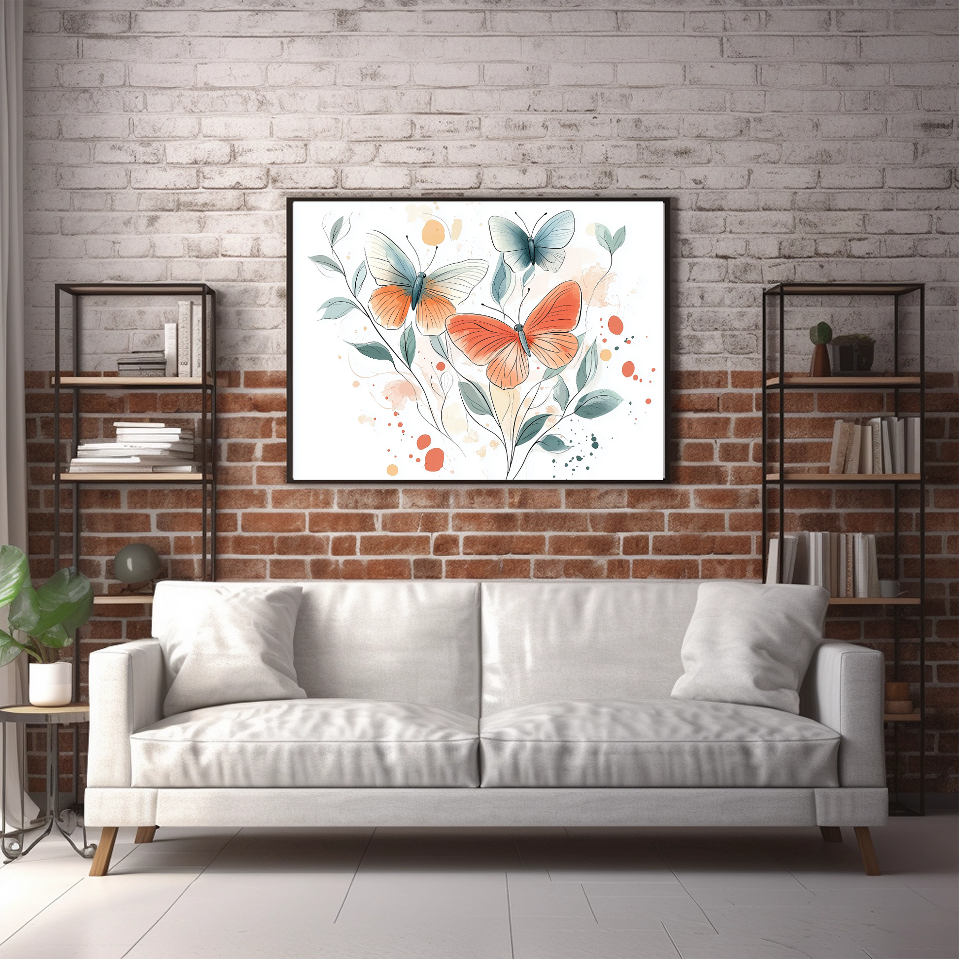Transform your space with our enchanting watercolor wall art featuring a captivating collection of butterflies. This elegant piece showcases a delightful array of butterflies rendered in soft, flowing watercolor techniques, creating a light and ethereal composition against a clean white background. Each butterfly is painted with graceful, translucent strokes that capture the delicate beauty and movement of these magical creatures. Perfect for nature lovers, art enthusiasts, and those seeking a serene and sophisticated decor accent, this artwork brings a touch of natural wonder and artistic elegance to any room.