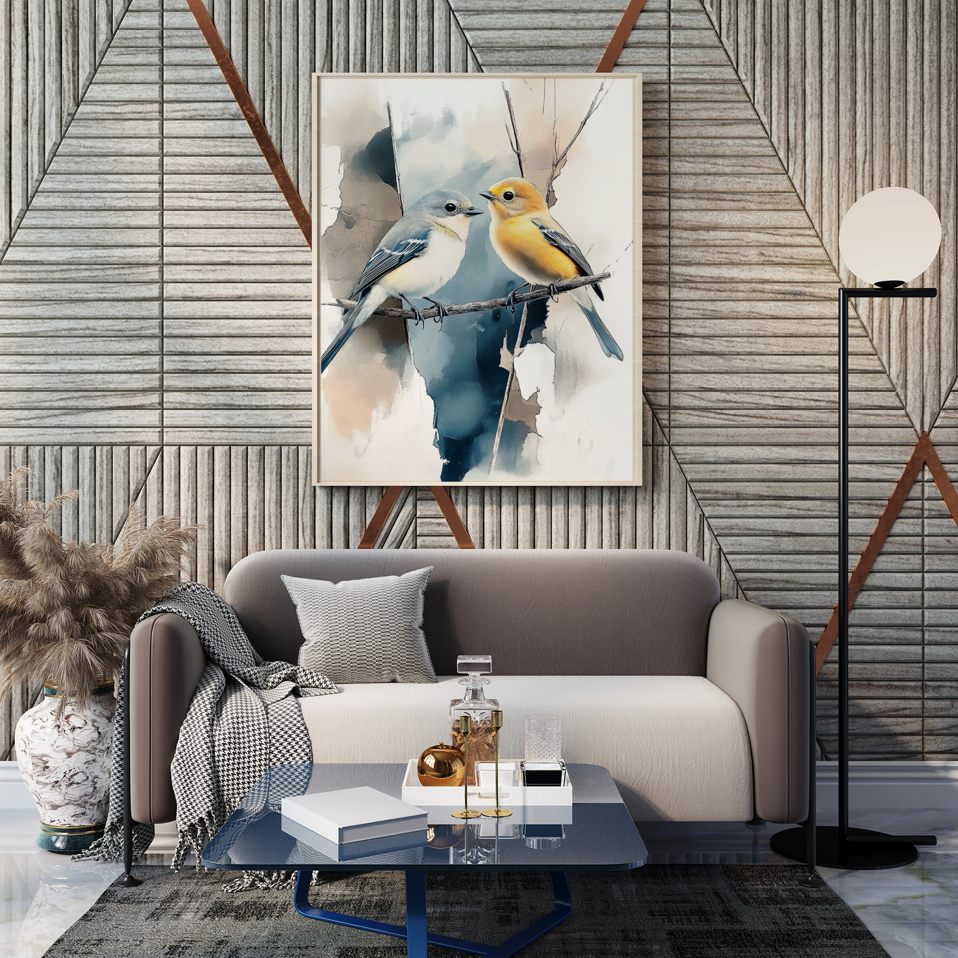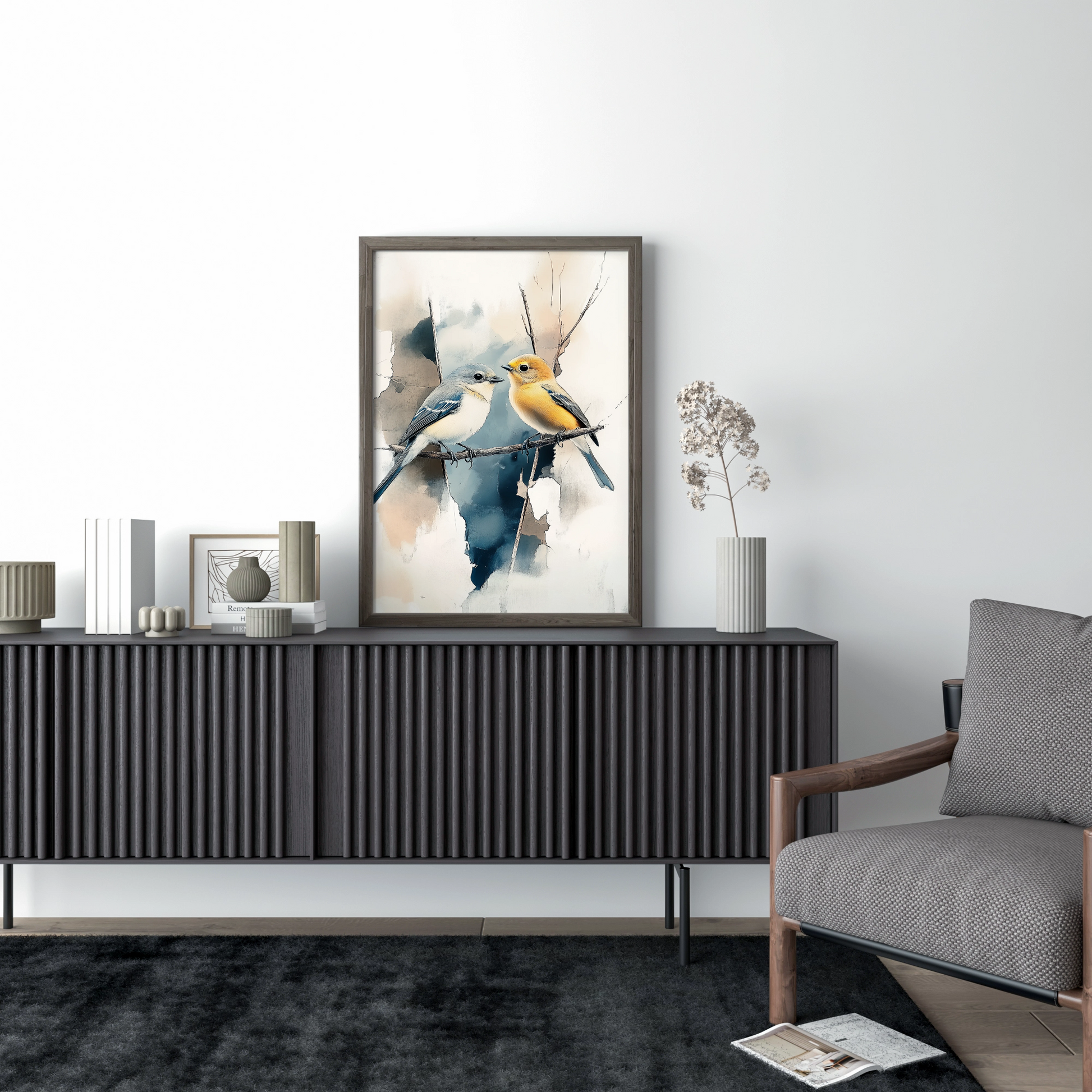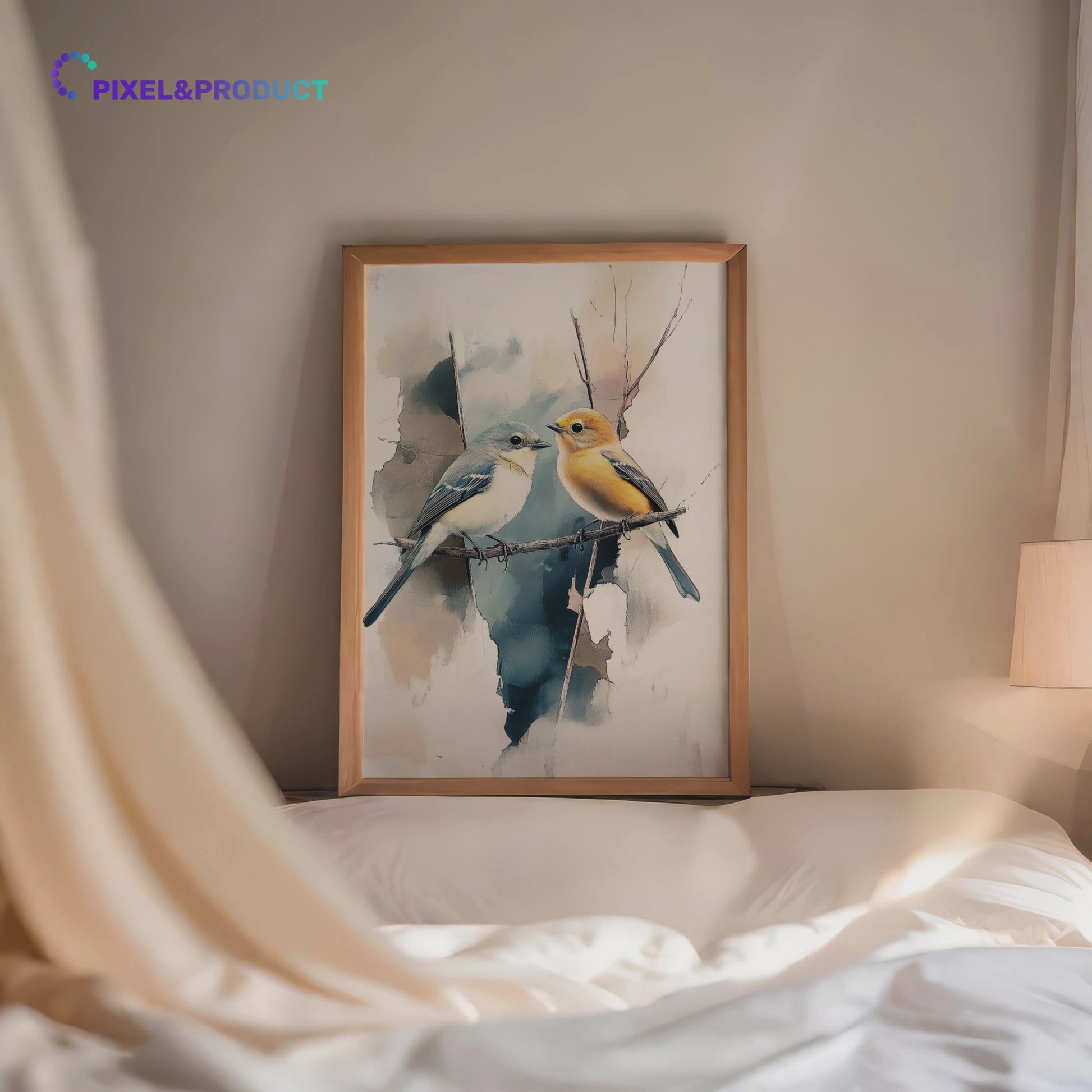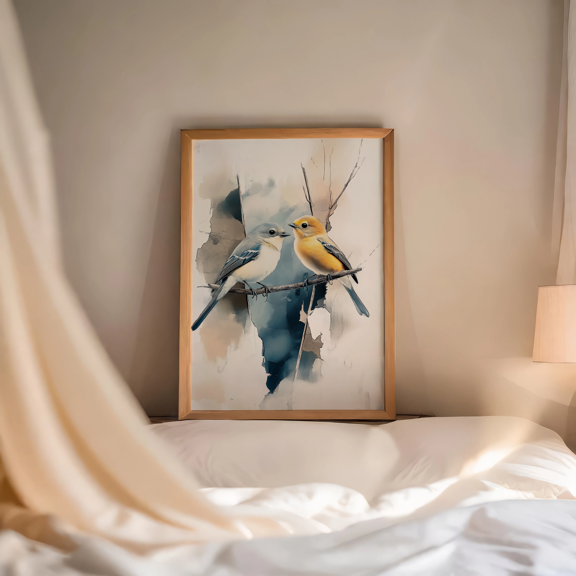 Elevate your decor with our enchanting wall art featuring two colorful birds perched gracefully on a branch. Set against a dreamy, blurred watercolor-style background, this artwork captures the delicate beauty of nature with soft, flowing colors and elegant composition. The vibrant hues of the birds create a striking contrast with the ethereal backdrop, bringing life and movement to any space. Perfect for art lovers and nature enthusiasts, this piece transforms your room with its blend of artistic technique and natural beauty. Bring a touch of whimsy and sophistication to your home with this captivating bird-themed artwork.