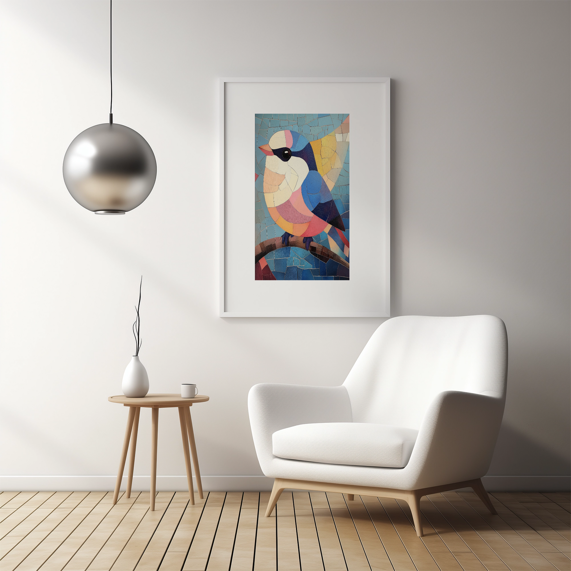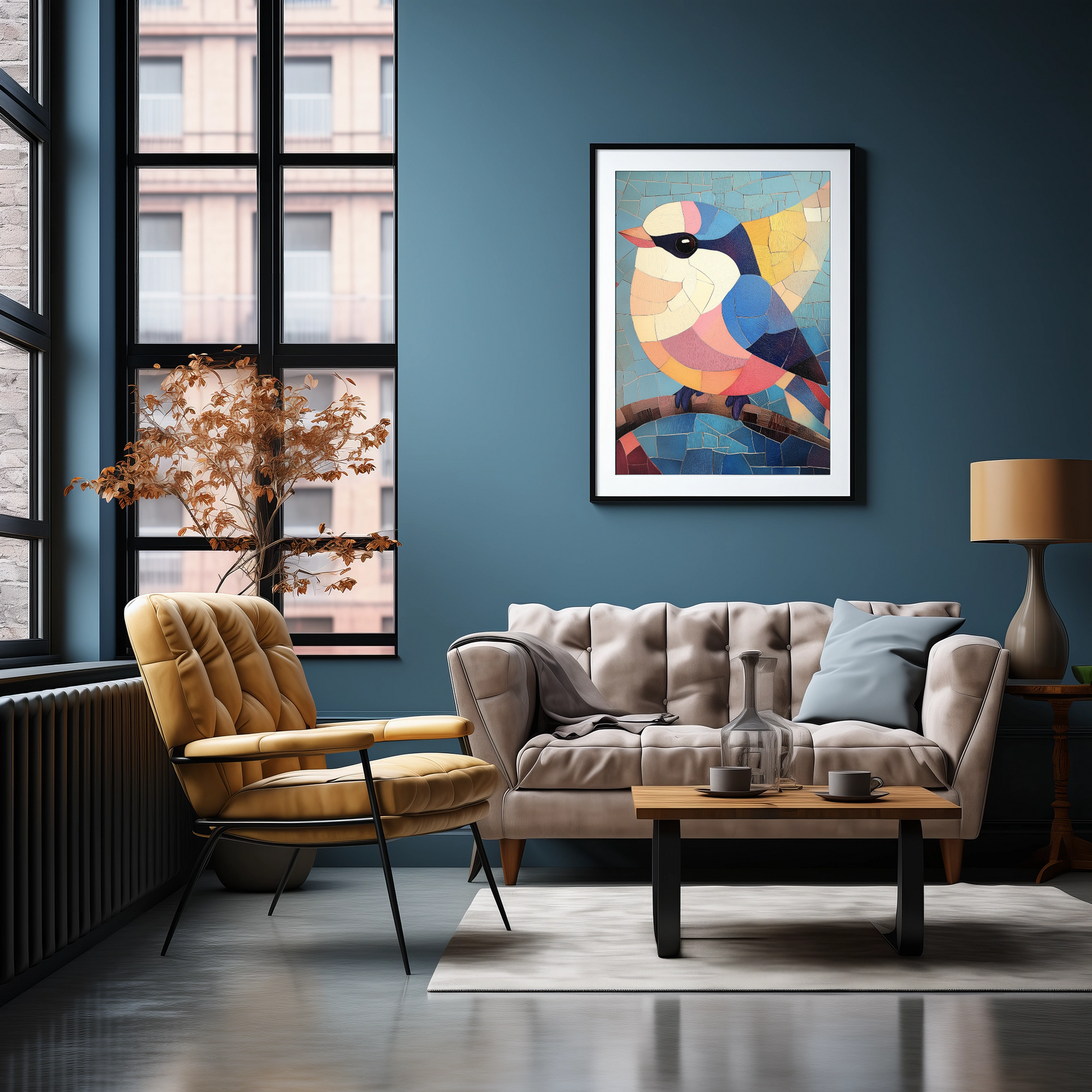 Transform your space with our exquisite mosaic wall art featuring a charming chickadee crafted from a delicate palette of pale blue, light pink, and lilac hues. This stunning piece captures the delicate beauty of the beloved bird through intricate mosaic techniques, creating a mesmerizing visual experience. Each carefully placed tile brings depth and texture to the artwork, highlighting the chickadee's elegant form against a soft, dreamy background. Perfect for nature lovers and art enthusiasts, this unique piece adds a touch of sophistication and whimsy to any room. Elevate your decor with this captivating representation of natural beauty rendered in a breathtaking mosaic design.