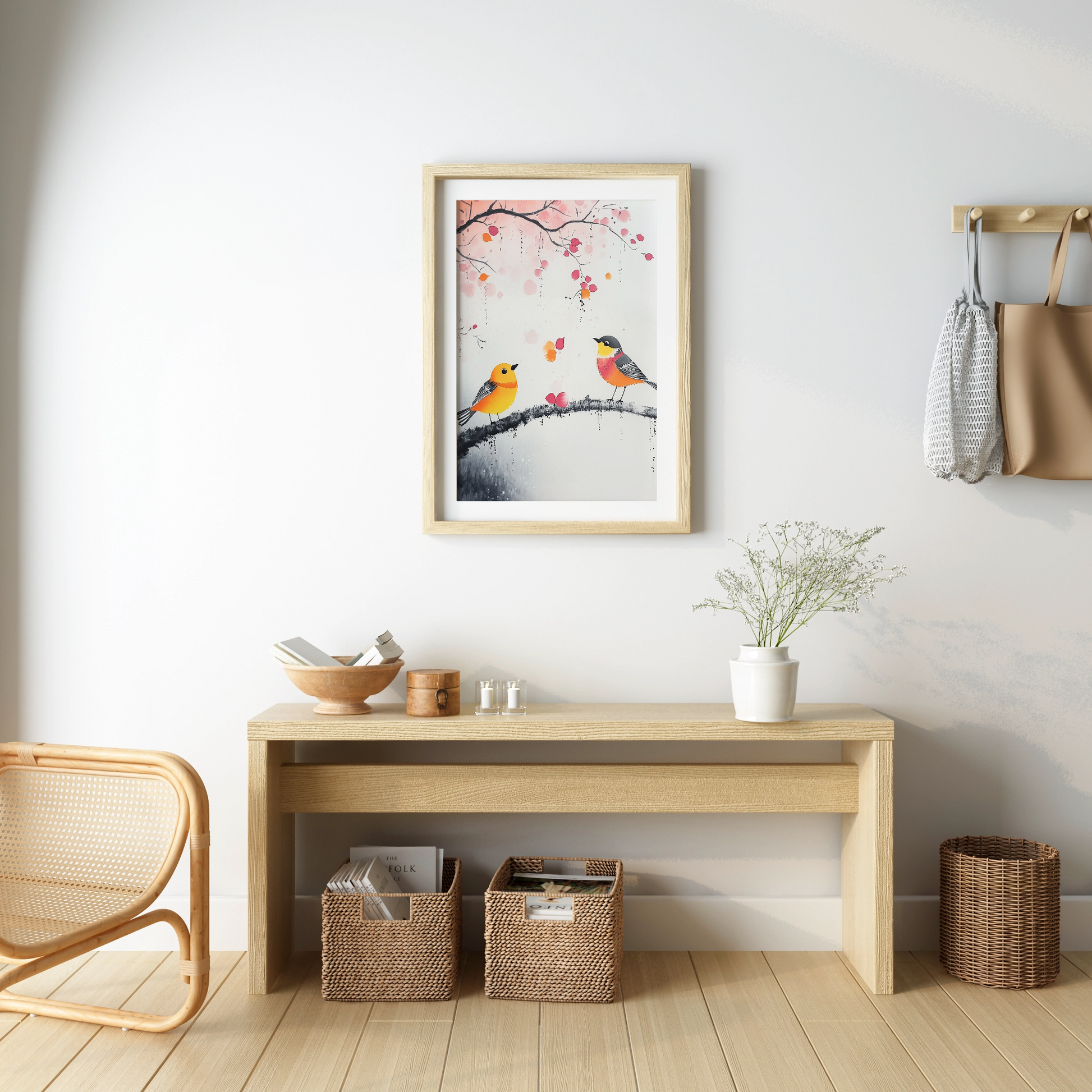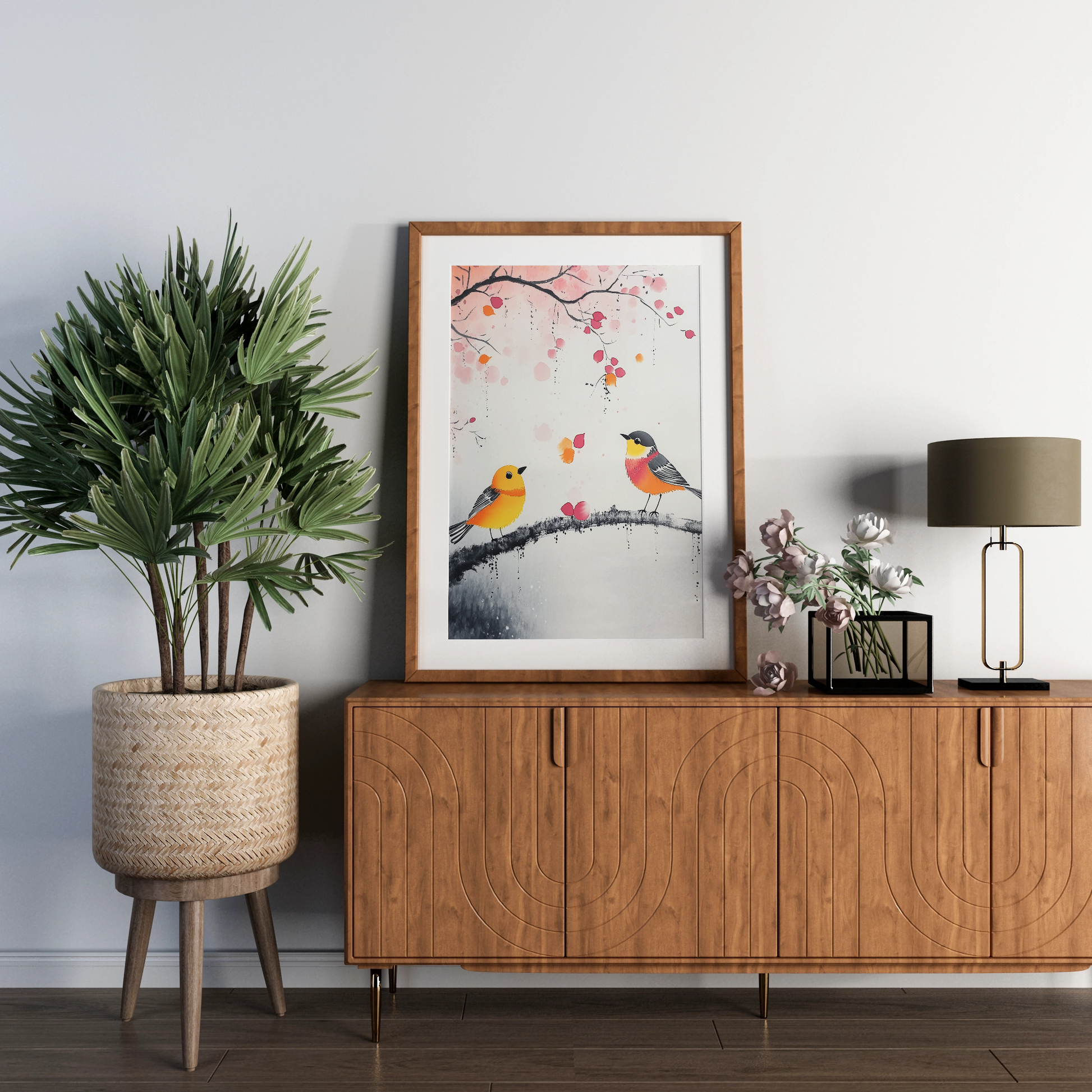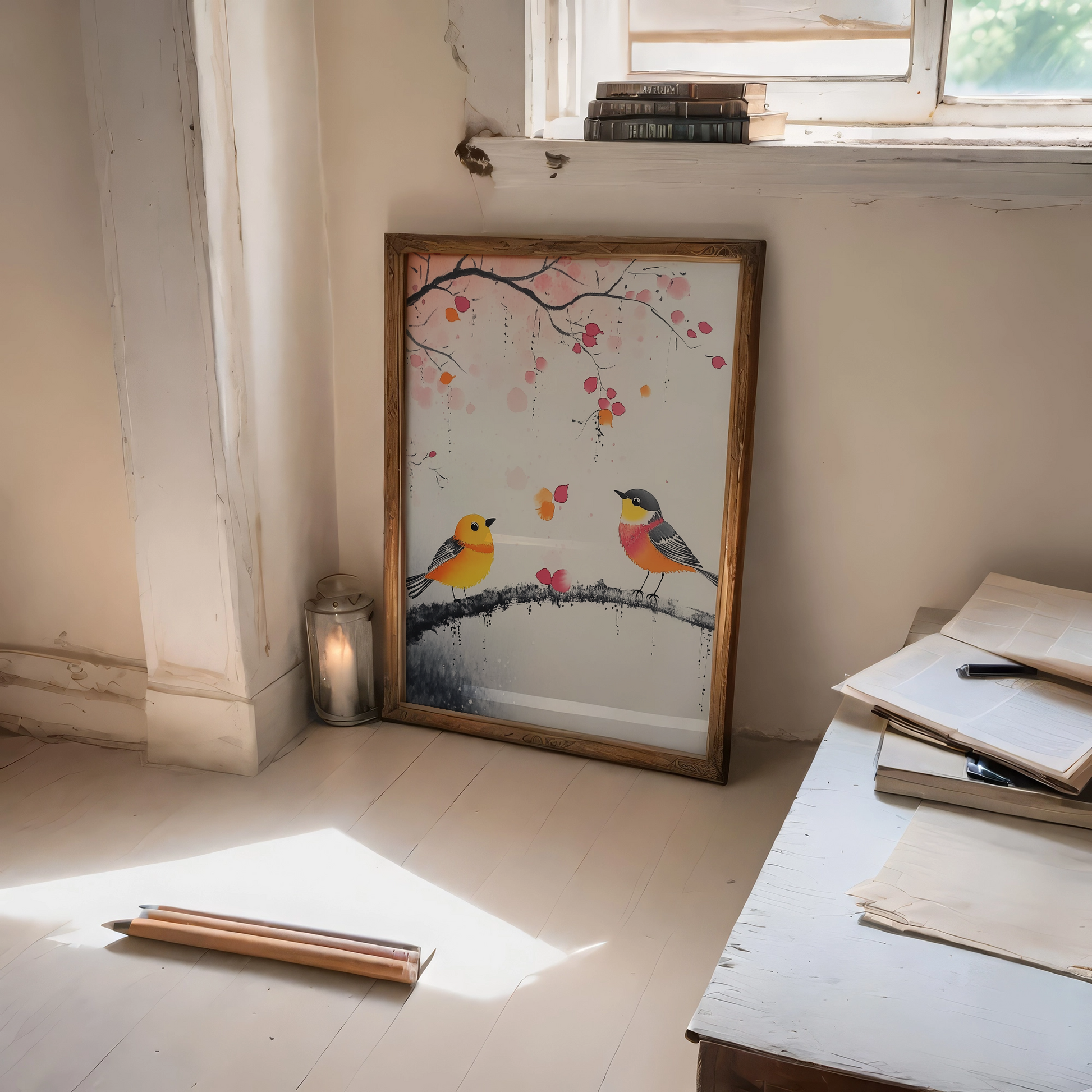 Immerse yourself in the essence of early spring with our captivating wall art that captures the magical moment of a fresh morning. This artwork brings to life the vibrant energy of songbirds celebrating the dawn, perched among dew-kissed flowers that glisten with the lingering moisture of a night's gentle rain. The piece evokes the crisp, rejuvenating scent of spring, with soft colors and delicate details that transport viewers to a serene, awakening landscape. Perfect for nature lovers and those seeking to bring the pure, hopeful spirit of spring into their home, this artwork creates a sense of renewal and natural beauty that brightens any space.