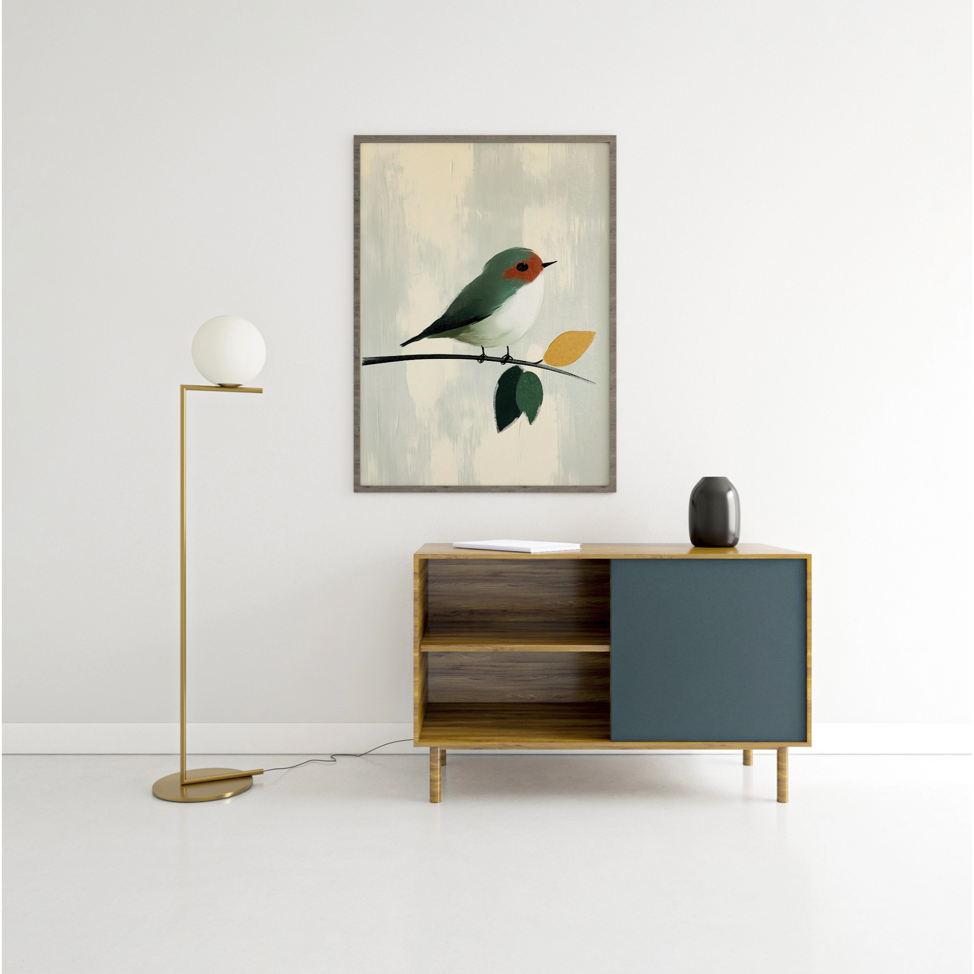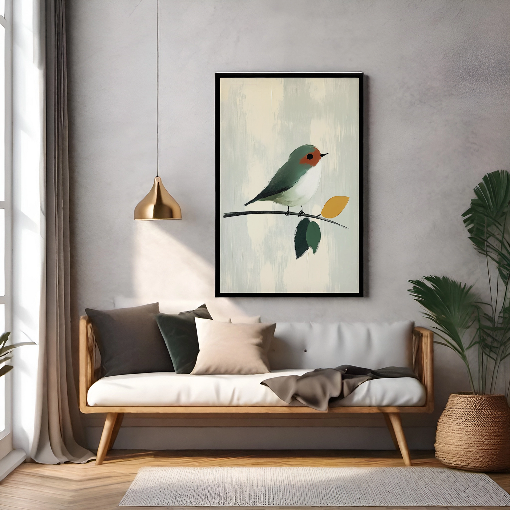 Enhance your decor with our stunning abstract oil painting featuring a small bird perched on a branch. This captivating artwork showcases a harmonious palette of white and gray, accented with soft green and vibrant yellow hues. The background is enriched with impasto strokes, adding texture and depth through muted colors that evoke a sense of tranquility. Perfect for modern art enthusiasts and nature lovers alike, this piece brings an elegant touch to any room, creating a serene atmosphere that invites reflection and appreciation for the beauty of simplicity.
