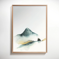 Enhance your space with our exquisite minimalist ink painting that captures the essence of tranquility. This artwork features a softly rounded mountain peak, delicately drawn with flowing lines and faint green ink, accompanied by a gentle stream of water. Centered on the canvas, the mountain occupies only a small portion, allowing for a vast expanse of blank space that evokes a sense of calm and harmony. A lonely turtle, depicted with fine strokes, makes its way against the wind, symbolizing perseverance as it hikes halfway up the mountain. The soft colors, with light gradients of green and subtle touches of gold, beautifully reflect the serene atmosphere of autumn. Perfect for those who appreciate minimalist art and nature-inspired decor, this piece brings a touch of peaceful elegance to any room.
