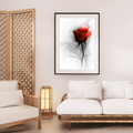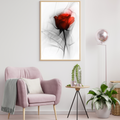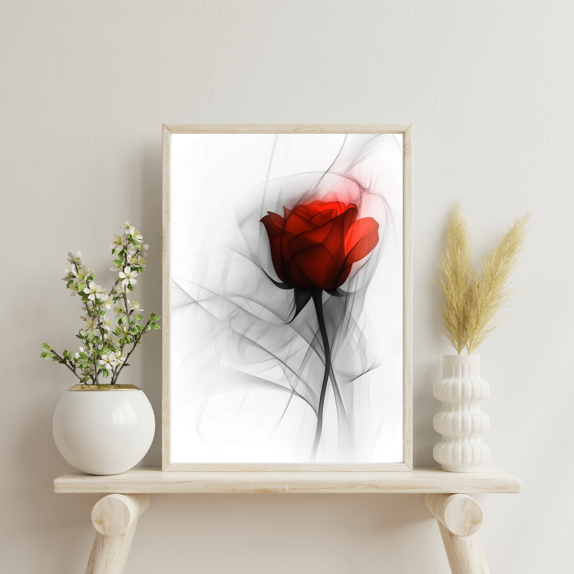 Capture the timeless beauty of a single red rose with our stunning art print. Set against a pristine white background delicately accented with hints of red, this image exudes elegance and passion. The vibrant crimson petals stand out in bold contrast, creating a focal point that draws the eye and stirs emotion. Perfect for romantics, flower enthusiasts, or anyone seeking to add a touch of classic beauty to their space, this print offers a sophisticated blend of simplicity and allure.