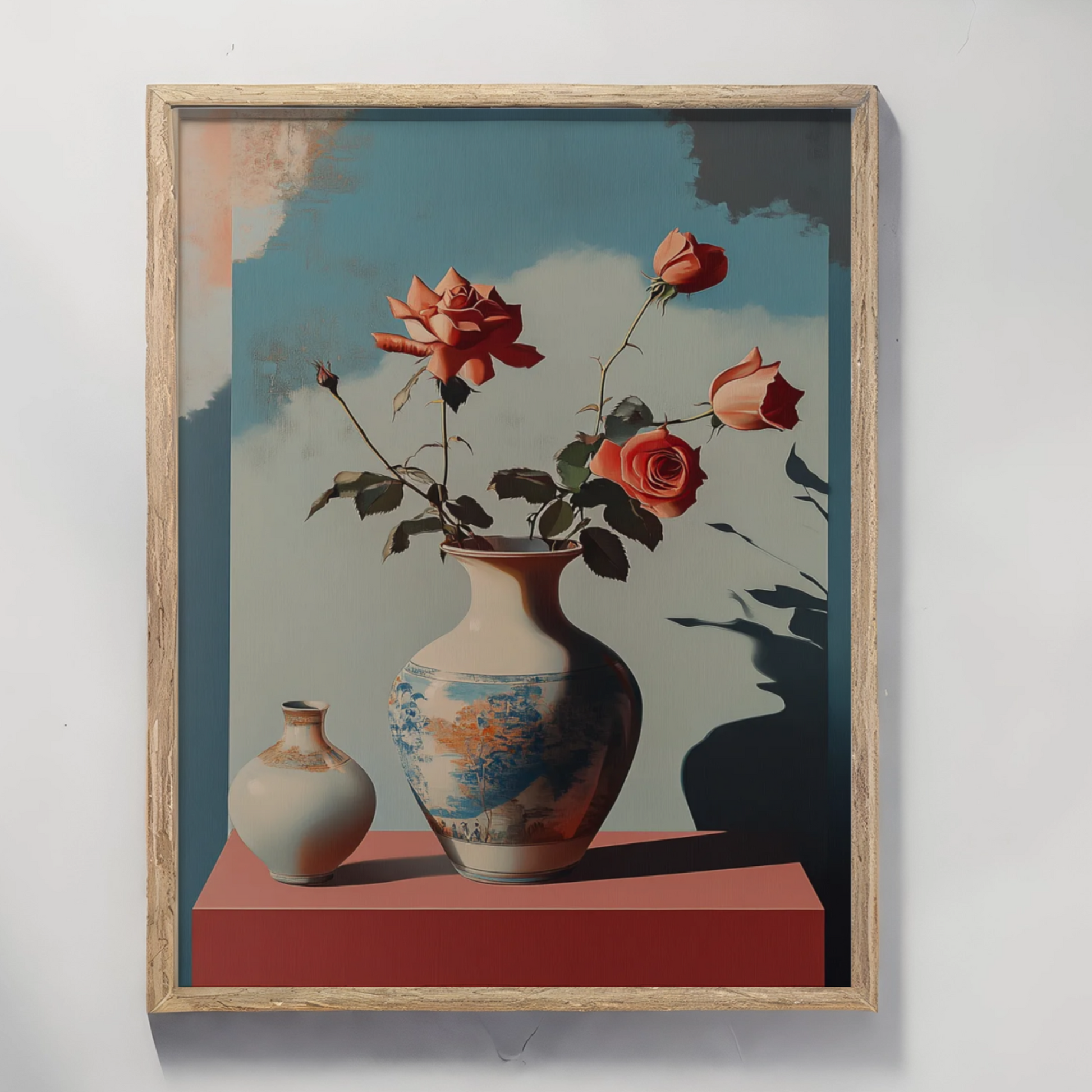 Surreal Elegance: Morandi-Inspired Rose Vase Poster - Dreamlike Floral Art. High Resolution Digital Download 300 DPI
