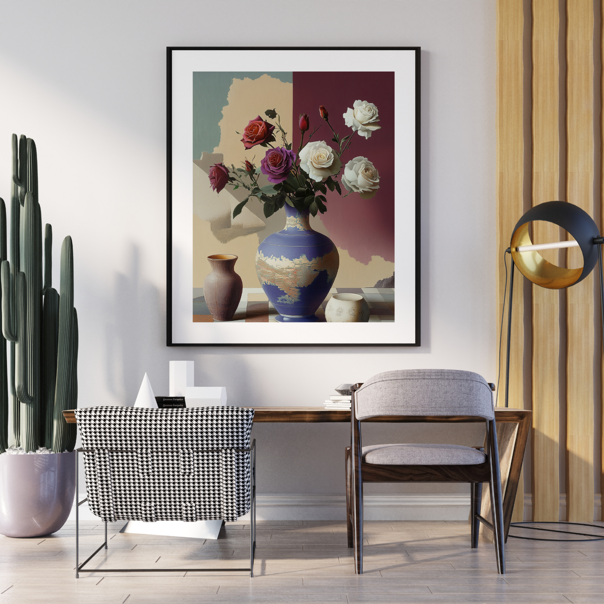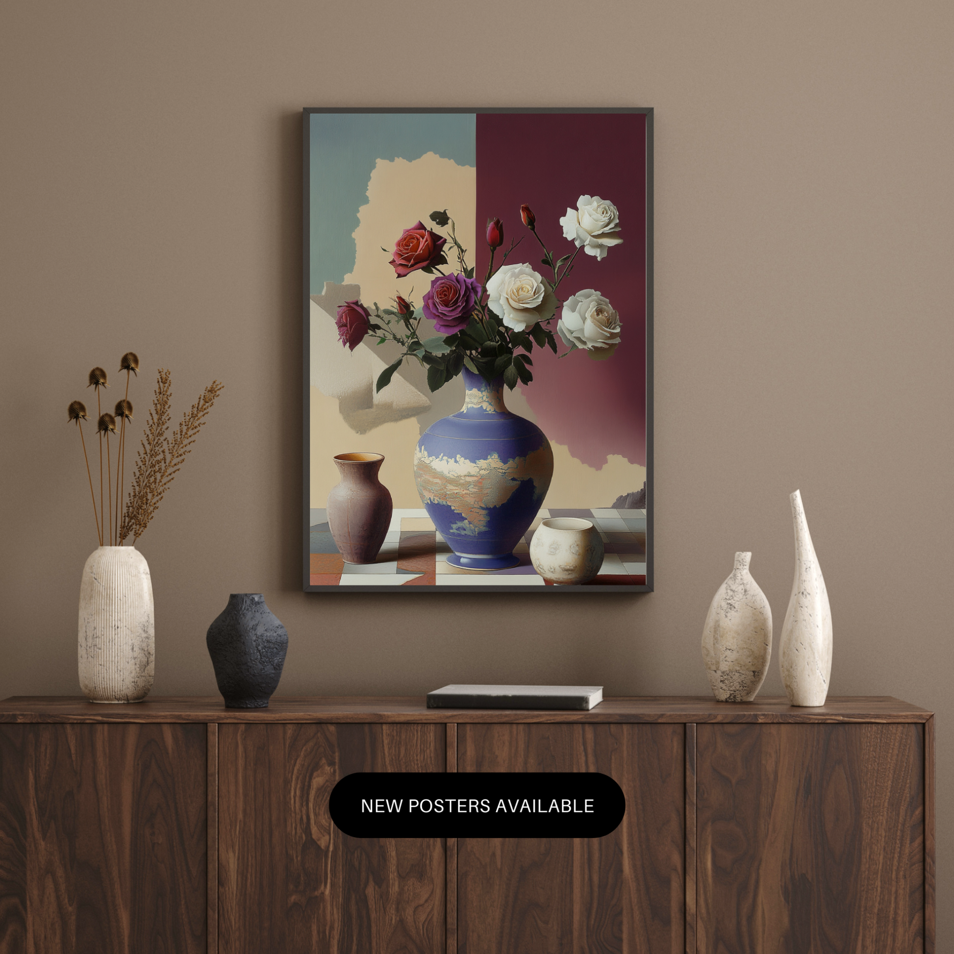 Elegant Rose Arrangement: Stunning Purple and White Roses in a Charming Vase. High Resolution Digital Download 300 DPI