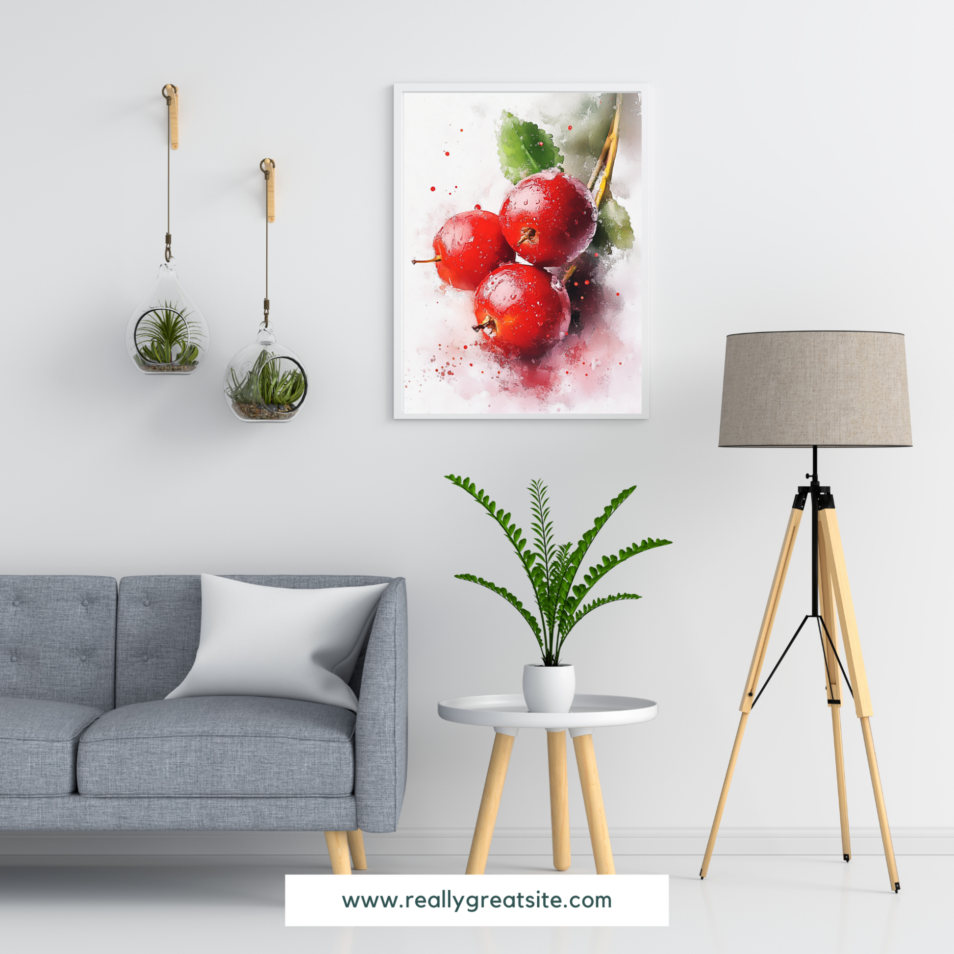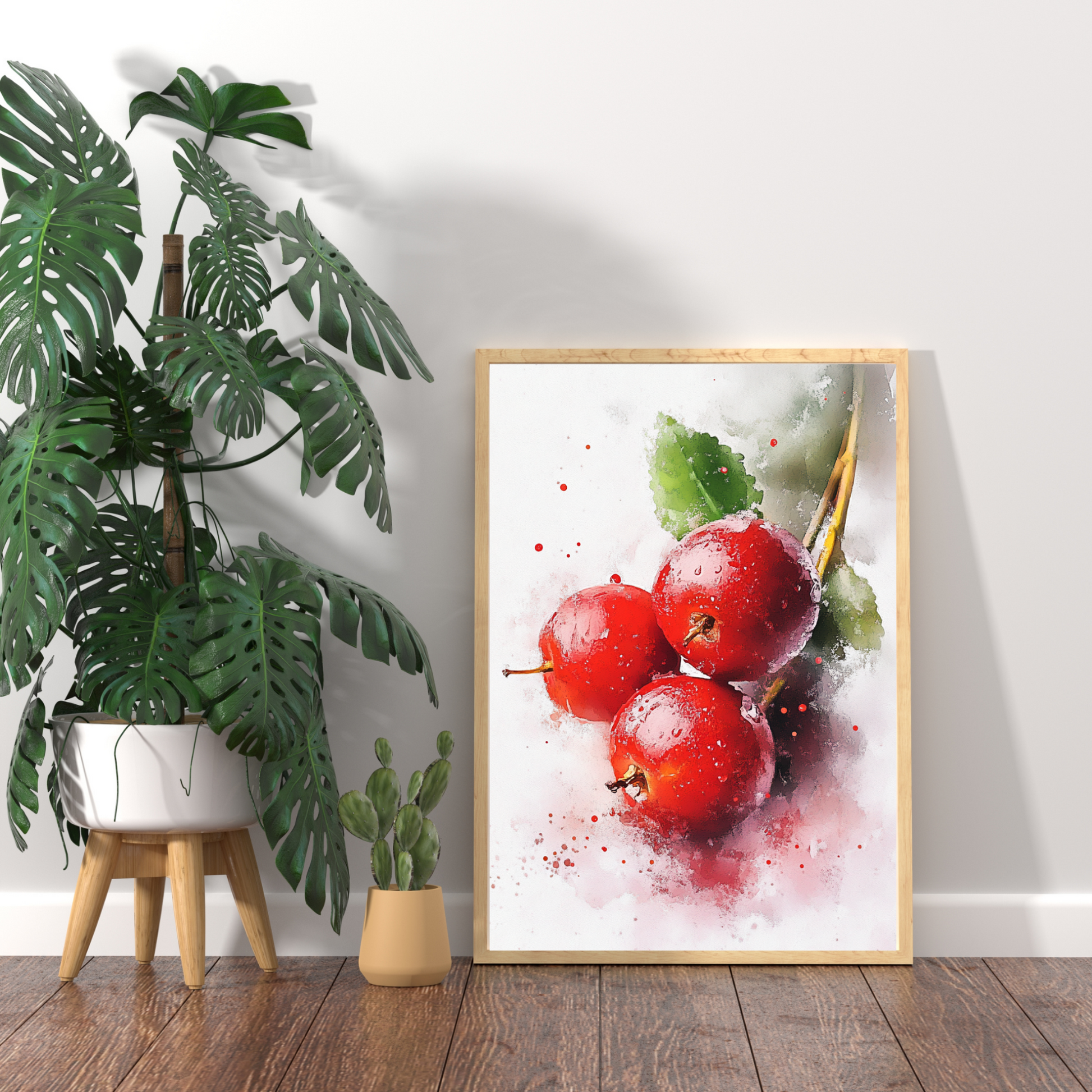 Immerse yourself in the enchanting world of our watercolor fruit artwork. This captivating piece blends dreamy artistry with vibrant splashes of color, creating a feast for the eyes. Our skilled watercolor technique brings a realistic touch to the whimsical composition, evoking the freshness of a sun-drenched day. Delicate color notes dance across the canvas, perfectly capturing the essence of juicy, ripe fruit. Ideal for those who appreciate the fusion of realism and artistic expression, this print adds a burst of colorful energy to any space while maintaining a sophisticated aesthetic.