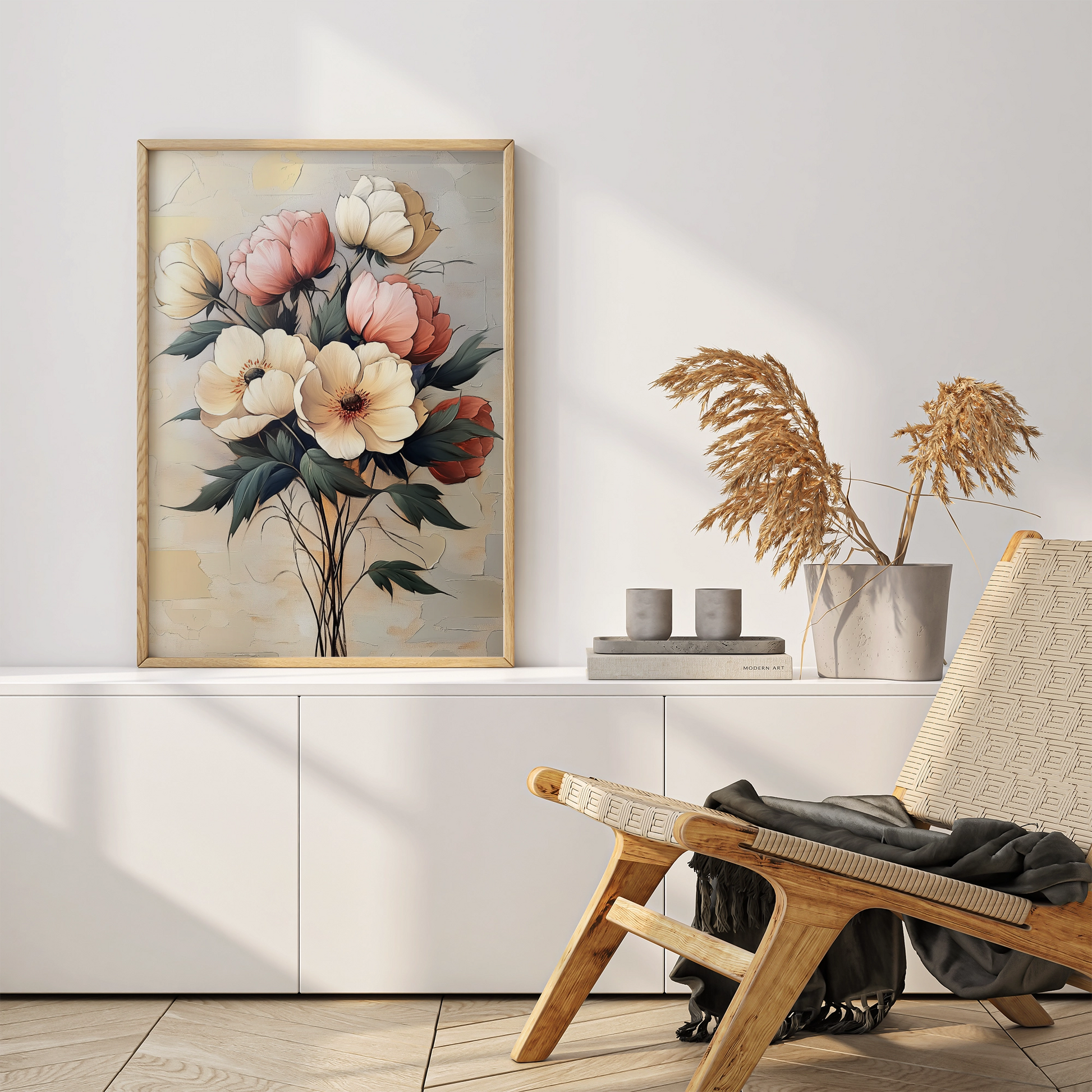 Timeless Botanical Elegance: Vintage Floral Painting for Sophisticated Interiors. High Resolution Digital Download 300 DPI