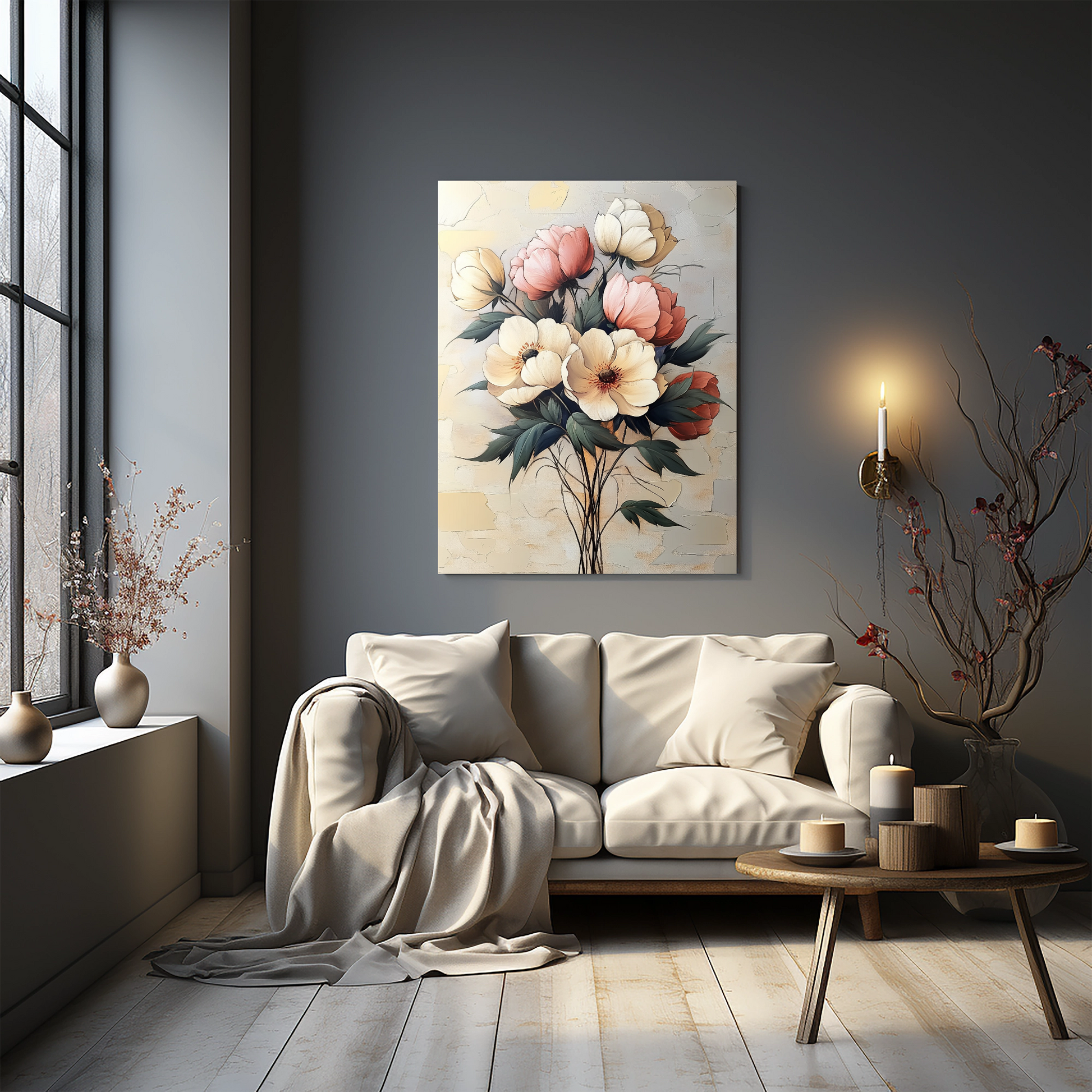 Elevate your living space with our exquisite vintage floral painting, a captivating piece of wall art that embodies timeless elegance. This carefully crafted artwork celebrates the delicate beauty of botanical elements, rendered in soft, nostalgic hues that transport you to a bygone era. Perfect for those who appreciate classic aesthetics and refined design, this painting adds a touch of sophisticated charm to any room. Whether adorning a traditional living room, a modern minimalist space, or an eclectic study, this vintage floral masterpiece brings a sense of grace and natural beauty to your interior decor.