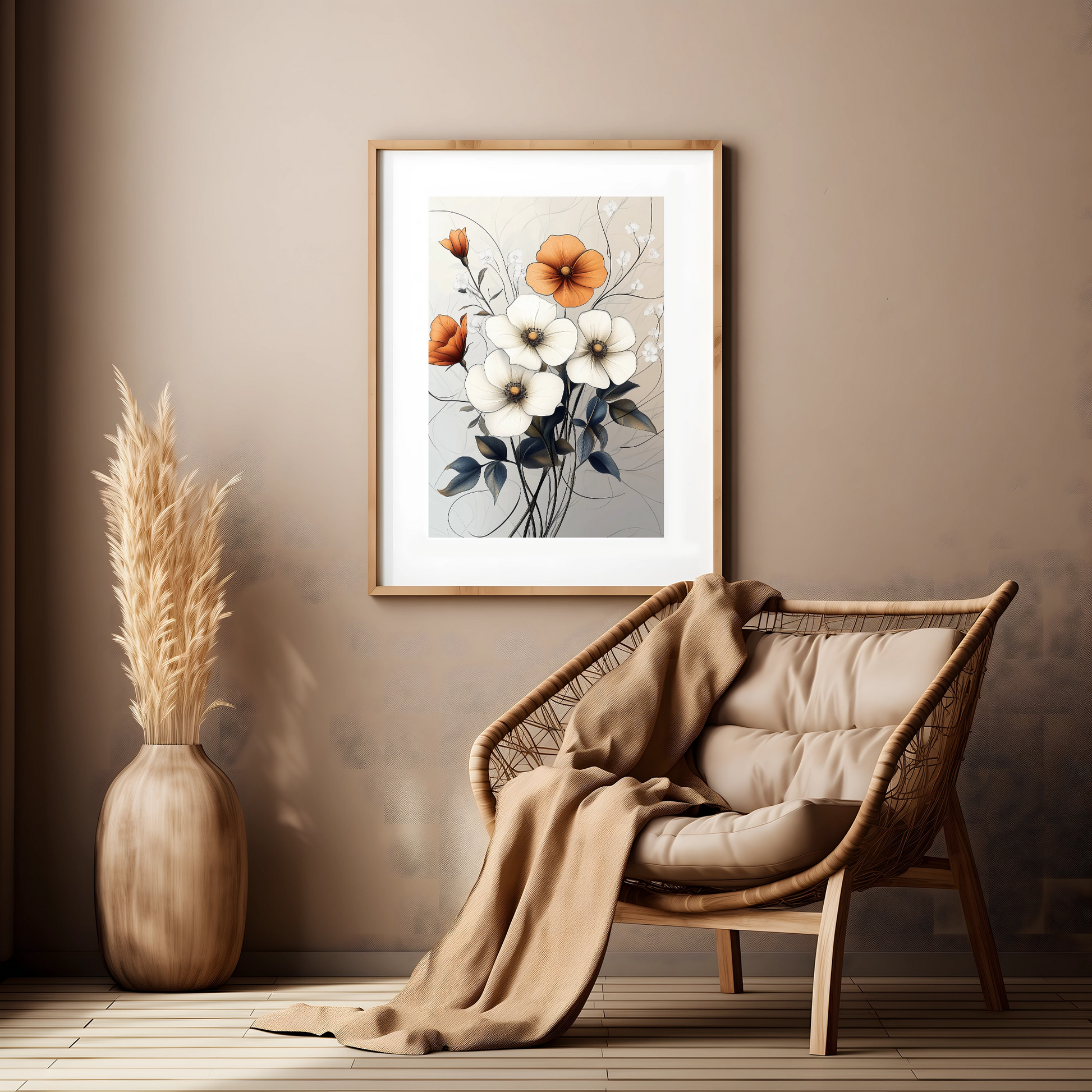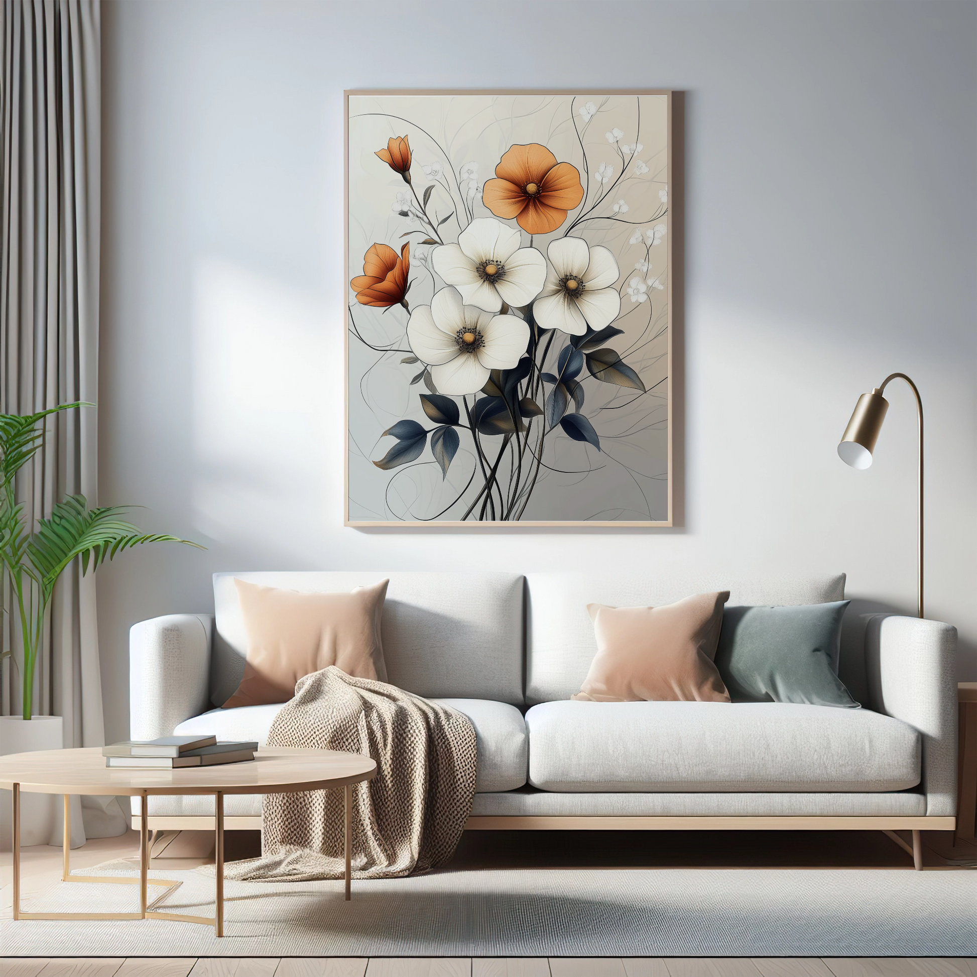 Elevate your living space with our stunning vintage floral wall art painting, featuring a captivating blend of white and orange flowers. This exquisite artwork captures the delicate beauty of botanical elements, rendered in soft, nostalgic hues that evoke a sense of timeless elegance. Perfect for those who appreciate classic design and natural beauty, this painting adds a touch of sophisticated charm to any room. Whether adorning a traditional living room, a modern minimalist space, or an eclectic study, this vintage floral masterpiece brings warmth, depth, and a hint of romantic history to your interior decor.