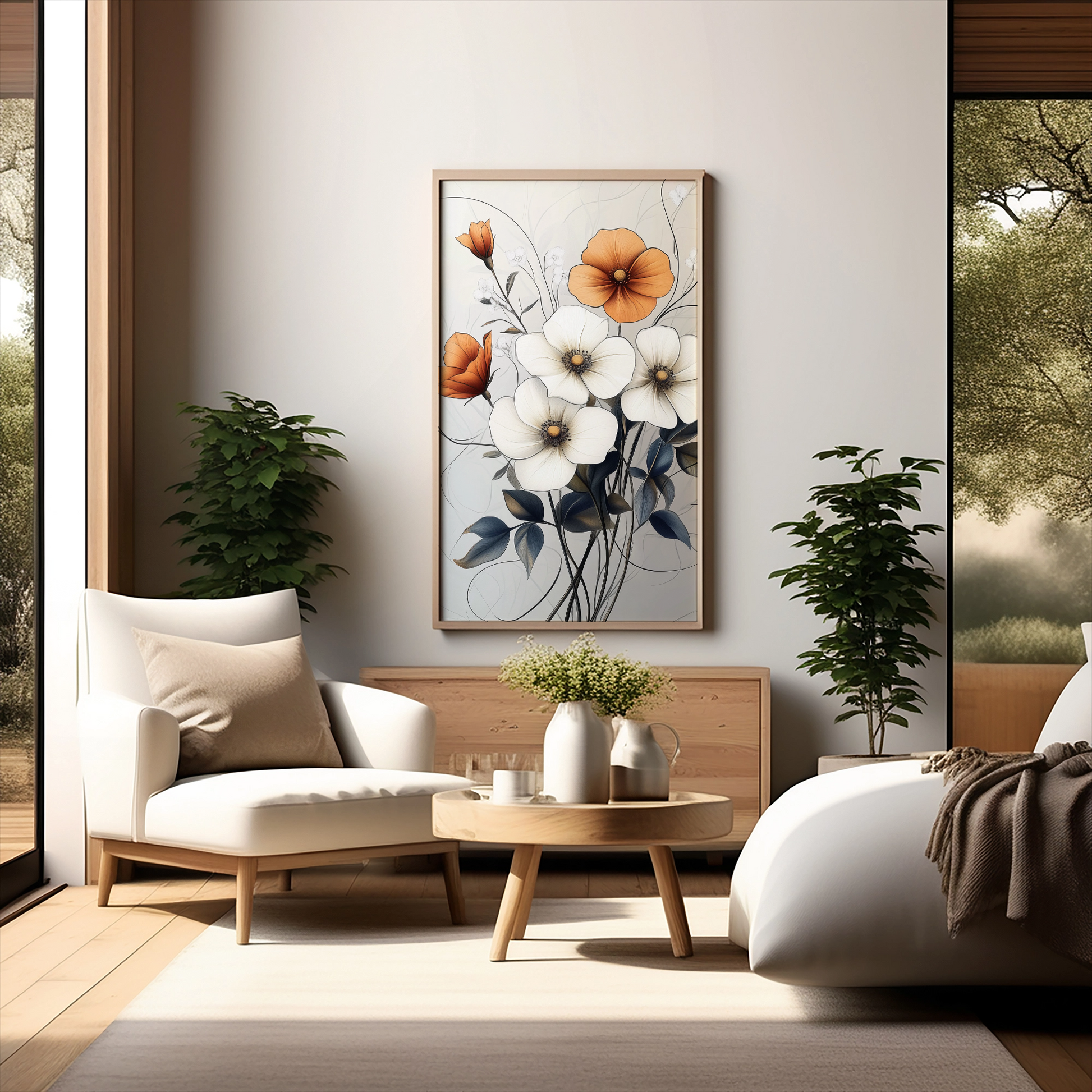 Vintage Botanical Elegance: White and Orange Floral Art for Timeless Decor. High Resolution Digital Download 300 DPI