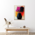 Elegant Dried Floral Arrangement: Black Vase Meets Vibrant Abstract Background. High Resolution Digital Download 300 DPI
