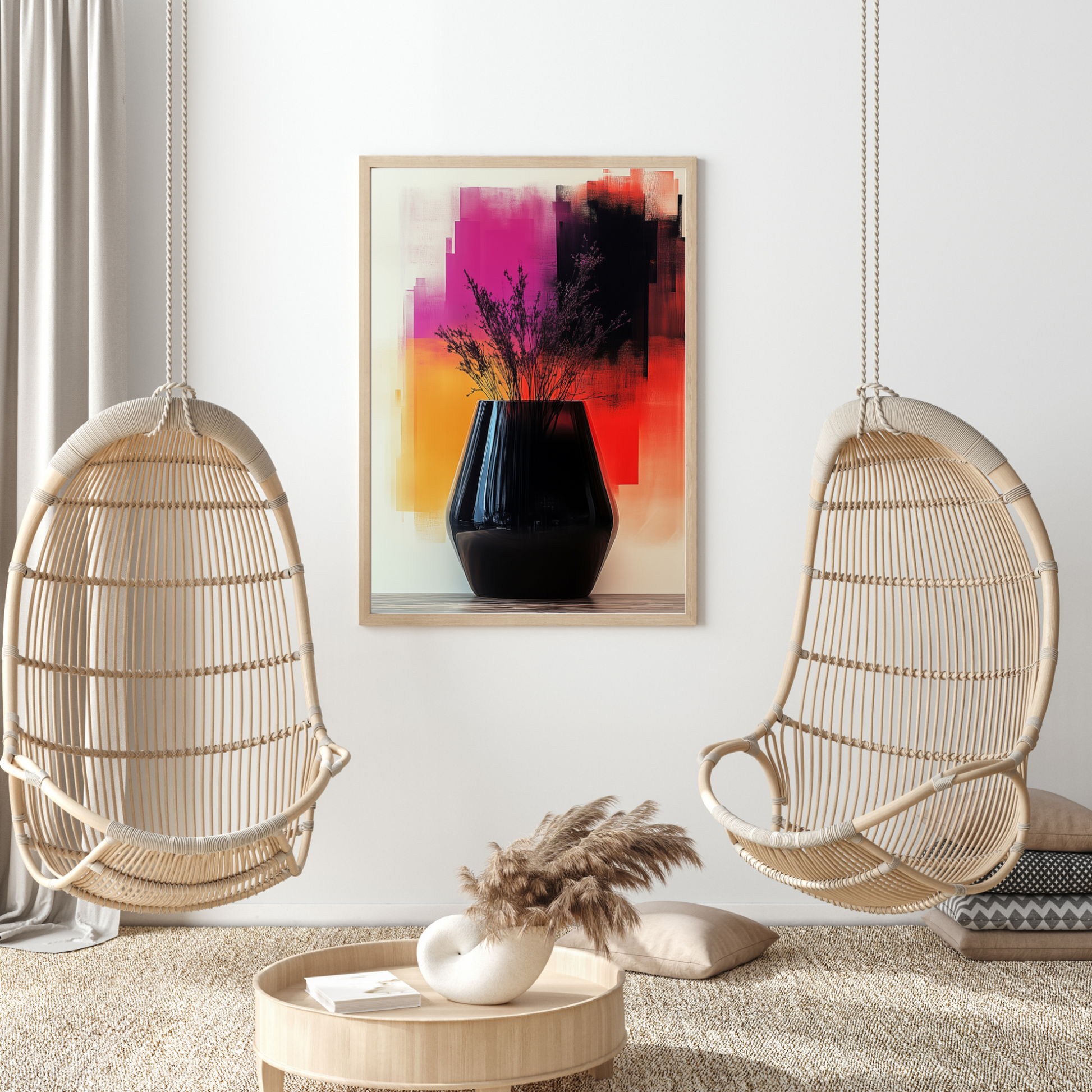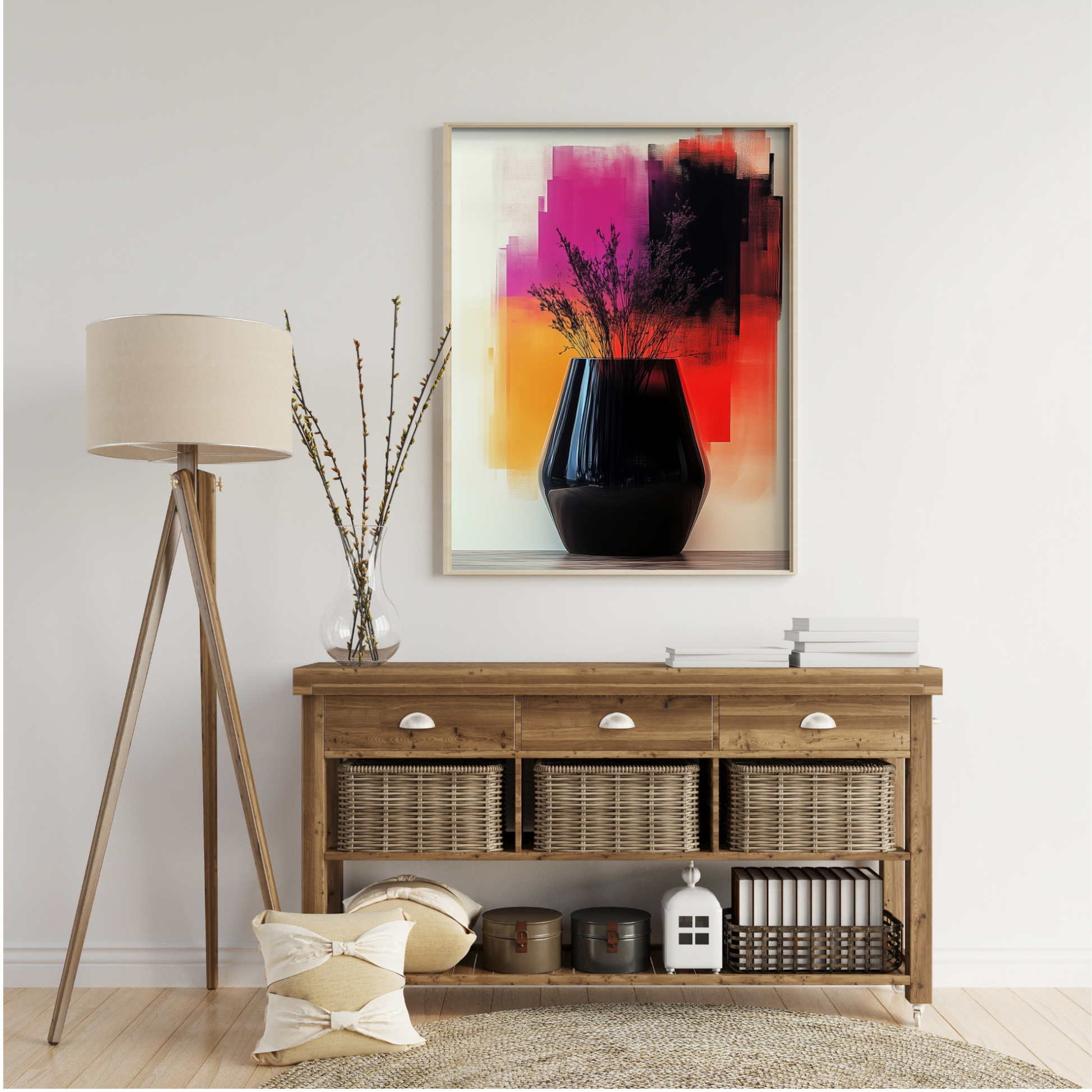 Elevate your decor with our stunning artwork featuring a sophisticated black vase filled with dried flowers, set against a mesmerizing abstract background. The canvas bursts with warm pink, vibrant orange, and rich red hues, creating a dynamic and visually striking composition. This piece beautifully blends the understated elegance of dried botanicals with the energy of contemporary abstract art, making it a perfect statement piece for any interior. Whether displayed in a modern living room, chic office, or minimalist bedroom, this artwork adds depth, warmth, and artistic sophistication to your space.