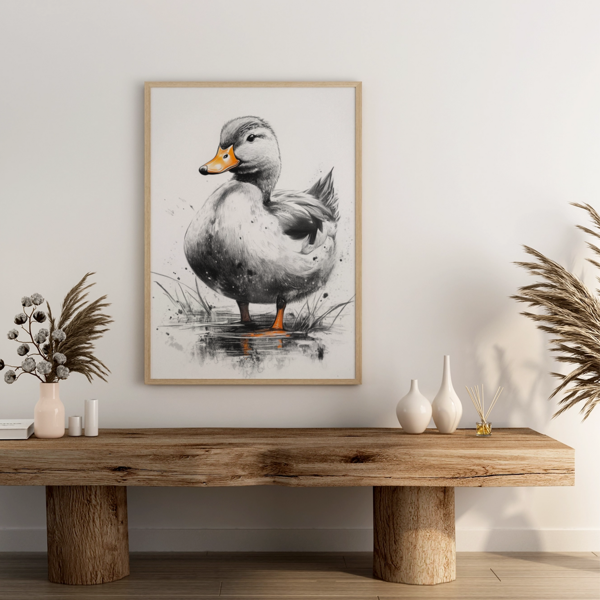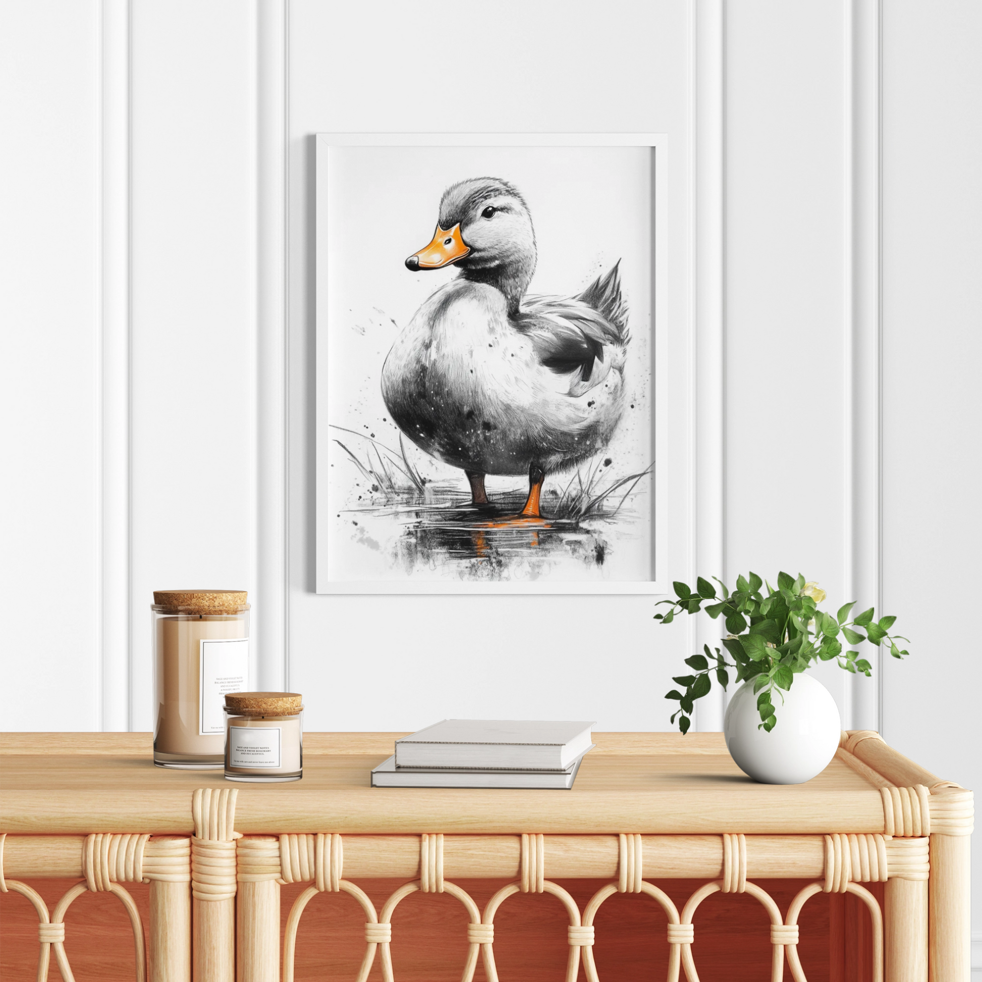 Charming Pencil Drawing of a Duck: Elegant Art for Nature Lovers. High Resolution Digital Download 300 DPI