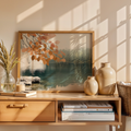 Autumn Leaves Lake Wall Art Golden Orange Waterfall Oil Painting. High Resolution Digital Download 300 DPI.