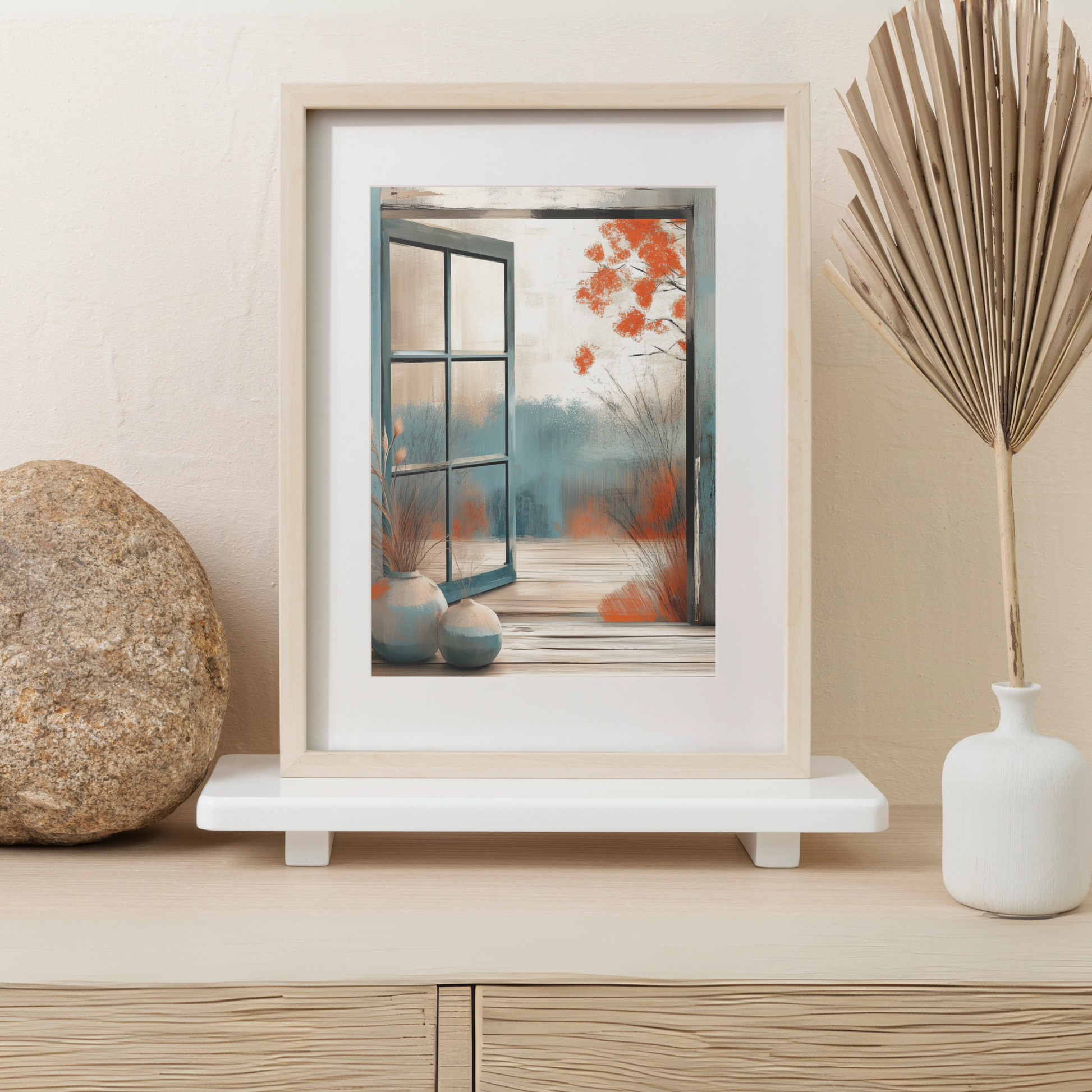 Autumn Window View: Cozy Fall Foliage Landscape Photography Wall Art. High Resolution Digital Download 300 DPI.