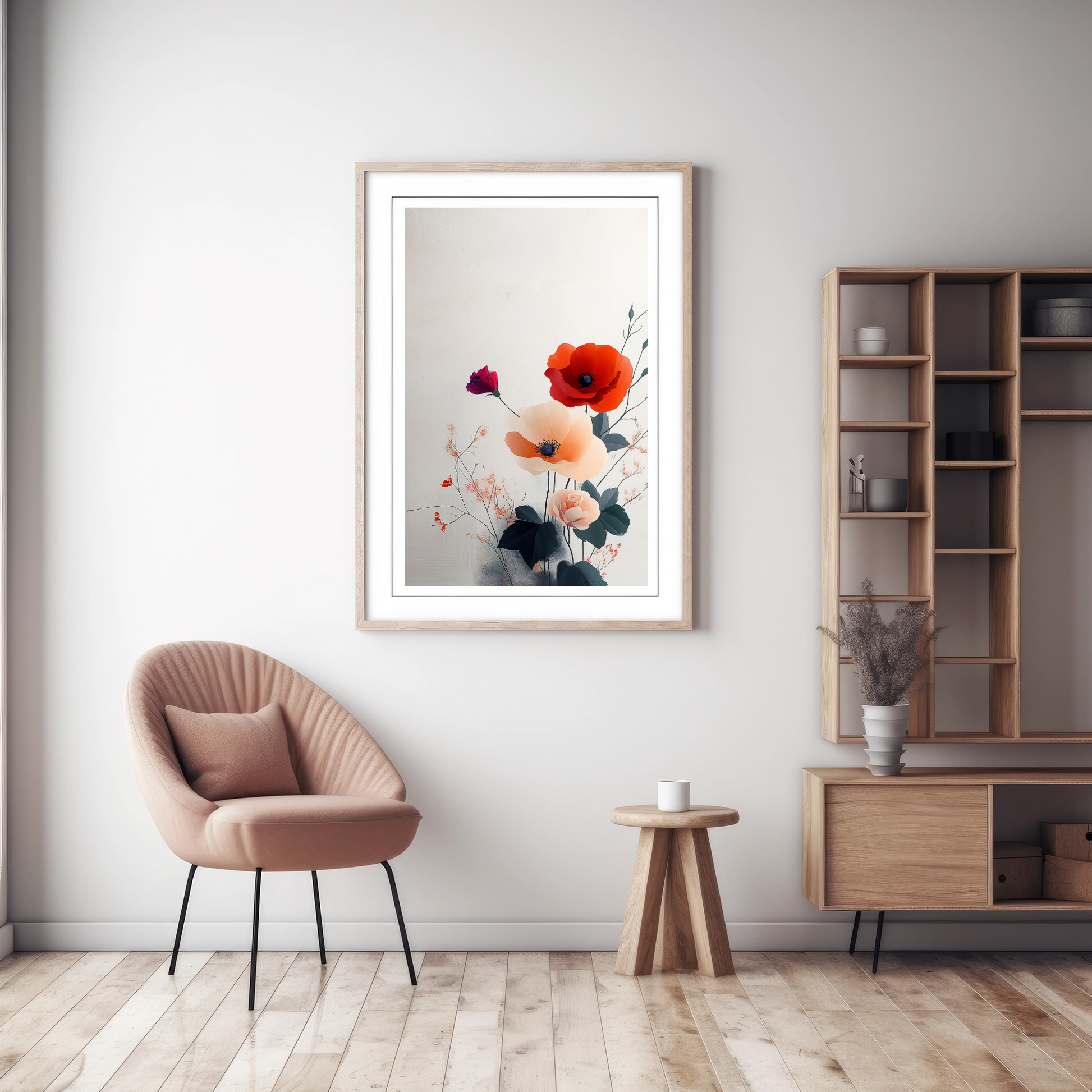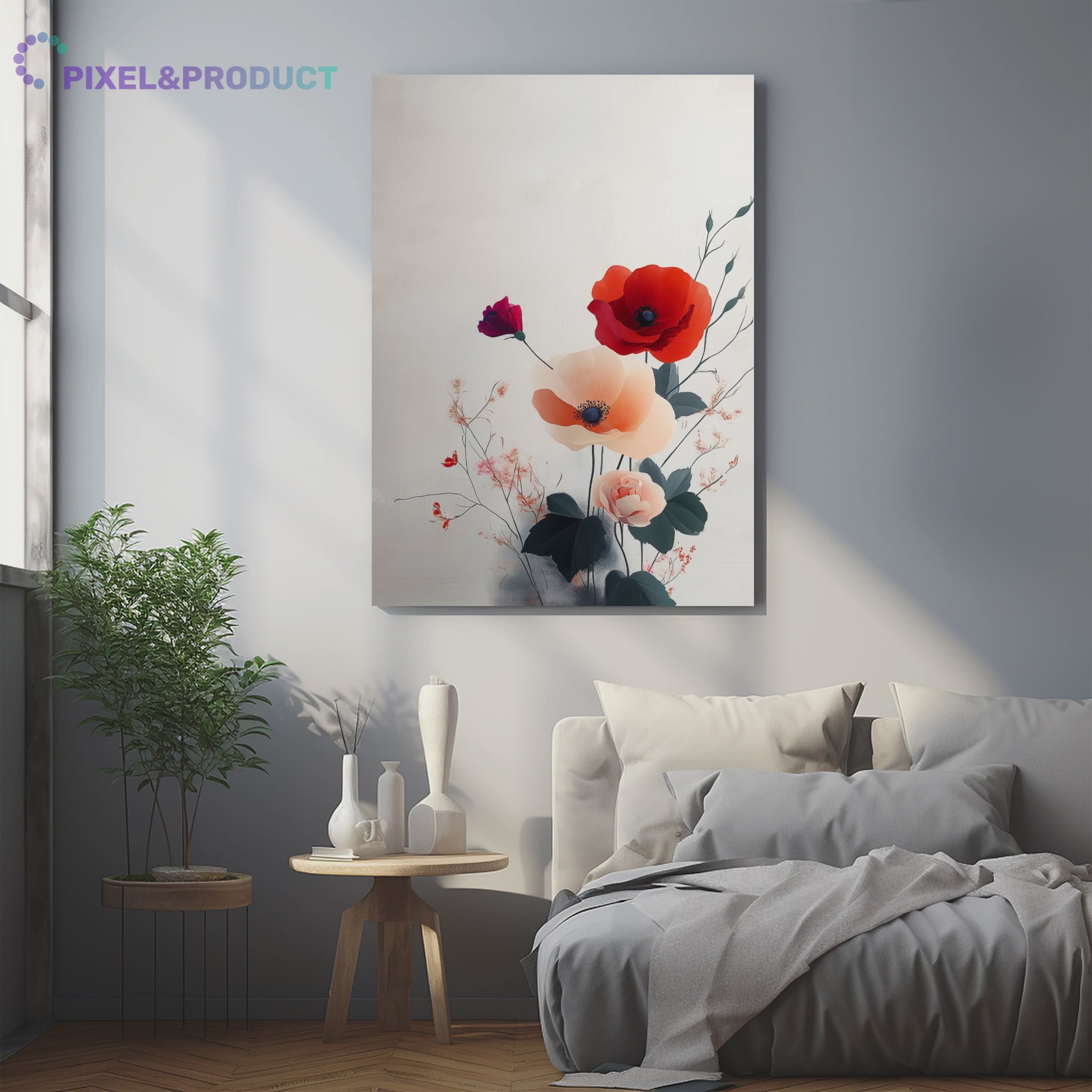 Vibrant Bouquet of Colorful Flowers: A Stunning Floral Arrangement Against a Light Background. High Resolution Digital Download 300 DPI
