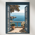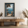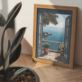 Coastal Serenity: Blue Balcony Sea View Cliff Landscape Wall Art. High Resolution Digital Download 300 DPI.