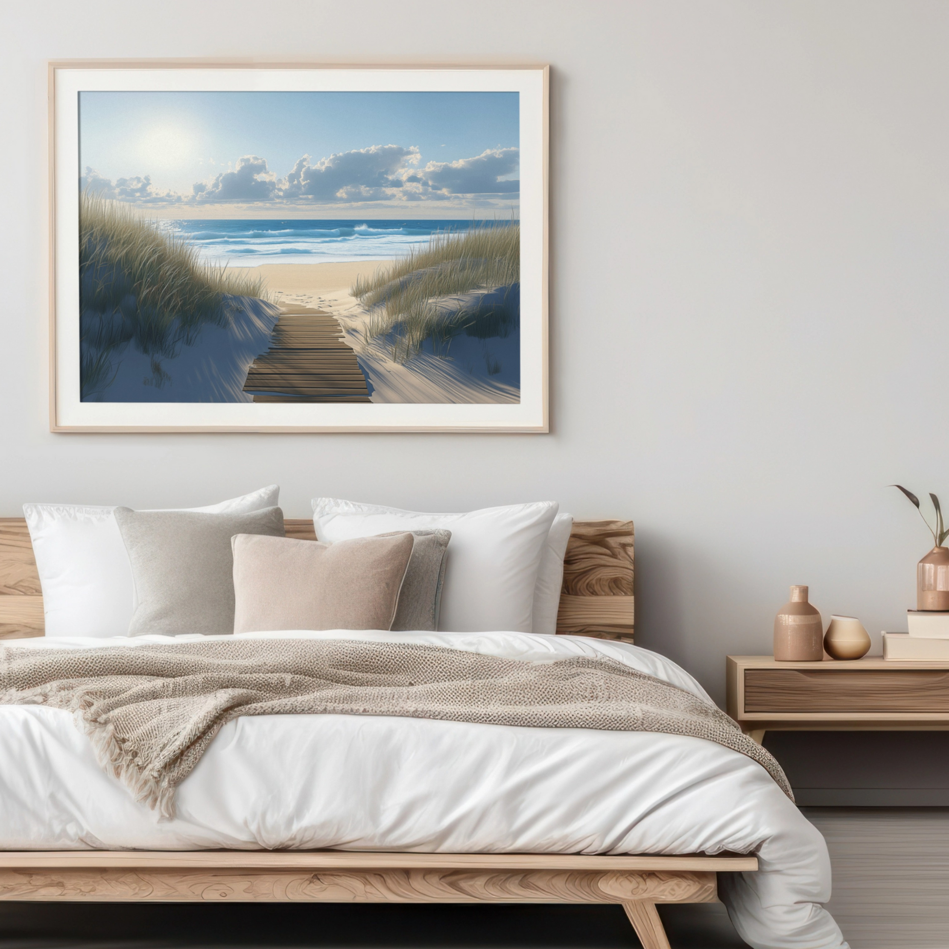 Coastal Serenity: Hyper-Realistic Beach Path Ocean View Wall Art. High Resolution Digital Download 300 DPI.
