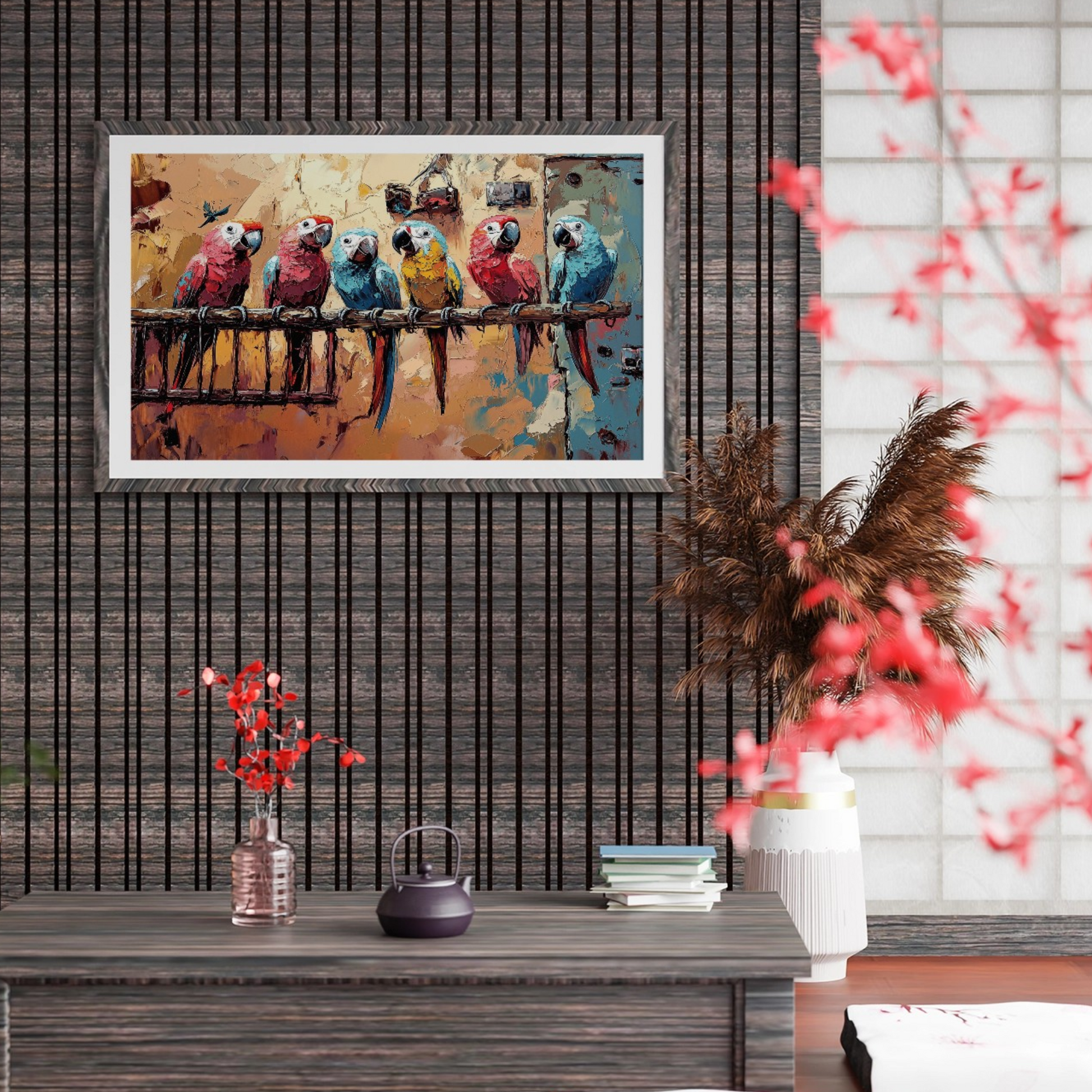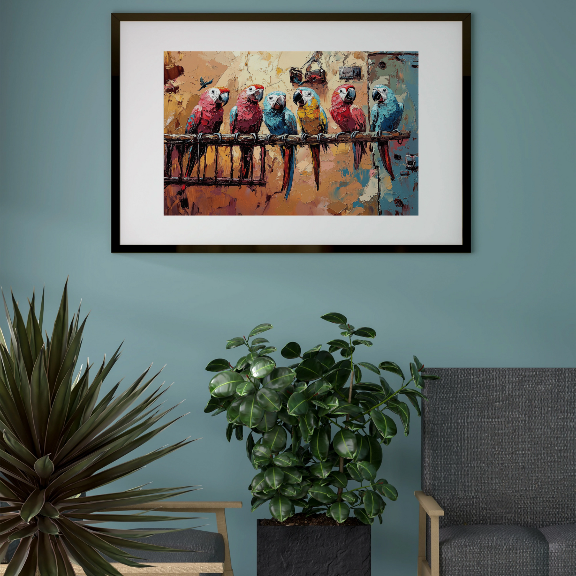 Add a touch of tropical beauty to your space with this stunning oil painting featuring a lively cage filled with colorful parrots in a serene wildlife park. The artwork captures the vibrant hues of exotic birds in meticulous detail, bringing life and energy to any room. Perfect for bird lovers and nature enthusiasts, this painting evokes the charm and wonder of the wild, making it an ideal centerpiece for your living room, bedroom, or office. This artwork combines rich textures and vivid colors to create a masterpiece that stands out on any wall. Its tropical theme and dynamic composition make it a versatile piece for various decor styles, from modern to bohemian. Whether you're looking to enhance your home’s ambiance or searching for a thoughtful gift, this parrot-inspired wall art is sure to captivate and inspire.