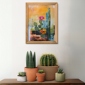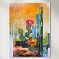 Immerse yourself in the breathtaking beauty of the American deserts with this stunning wall art piece. A majestic Saguaro cactus takes center stage, its arms reaching skyward and adorned with delicate, vibrant flowers in full bloom. The iconic cactus stands proudly against a backdrop of dramatic rock formations, their rugged contours carved by time and the elements. This artwork captures the essence of the desert's raw beauty, showcasing the resilience and vibrancy of life in this seemingly harsh environment. This captivating art brings the spirit of the desert into your home or office. The contrast between the soft, colorful cactus blooms and the stark, weathered rocks creates a visually striking composition that draws the eye and invites contemplation. The rich, warm hues of the desert palette evoke the heat of the sun-baked landscape, while the intricate details of the cactus and rock textures showcase the artist's skill in capturing nature's complexity. Perfect for lovers of Southwestern decor, nature enthusiasts, or anyone seeking to add a touch of rugged elegance to their space, this piece serves as a daily reminder of the unique beauty found in desert landscapes.