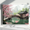 Celebrate the timeless elegance of Japanese architecture with this wall art inspired by a medieval Japanese bridge. During Japan’s Middle Ages, bridges were primarily wooden, often built with simple beam or plank structures to suit the country’s mountainous terrain and swift rivers.These historic bridges, such as the legendary Saruhashi and the sacred Shinkyō in Nikkō, were not only practical crossings but also iconic elements of the landscape, frequently depicted in traditional picture scrolls and admired for their harmonious integration with nature. Rendered in a style that echoes the serene beauty of Japan’s past, this artwork captures the tranquil atmosphere surrounding these historic bridges where misty rivers, lush forests, and refined wooden craftsmanship come together. Perfect for lovers of history, architecture, and Japanese culture, this piece brings a touch of ancient serenity and scenic charm to any space.