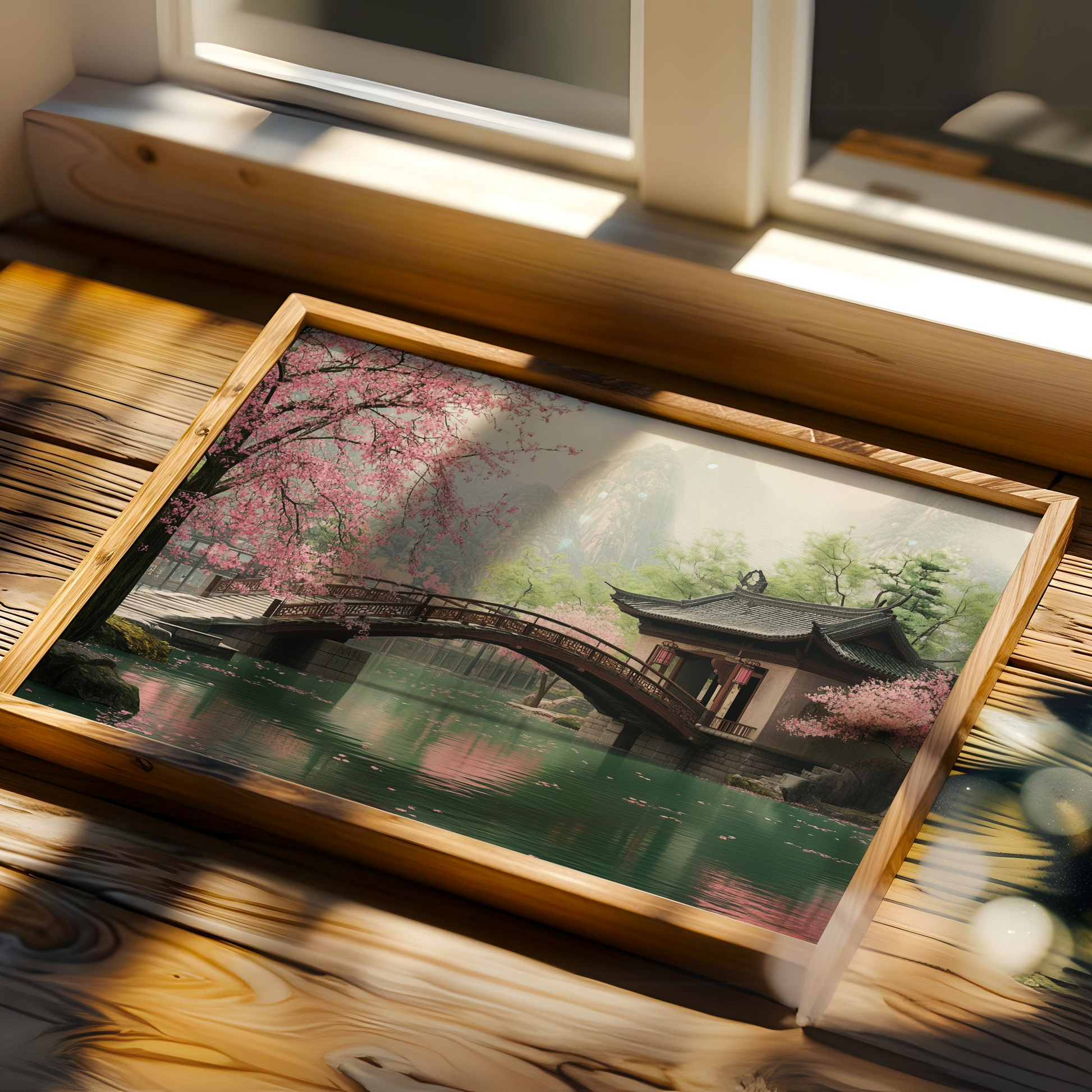 Japanese Medieval Bridge Wall Art Wooden Historic Scenic Nature Tranquil. High Resolution Digital Download 300 DPI.