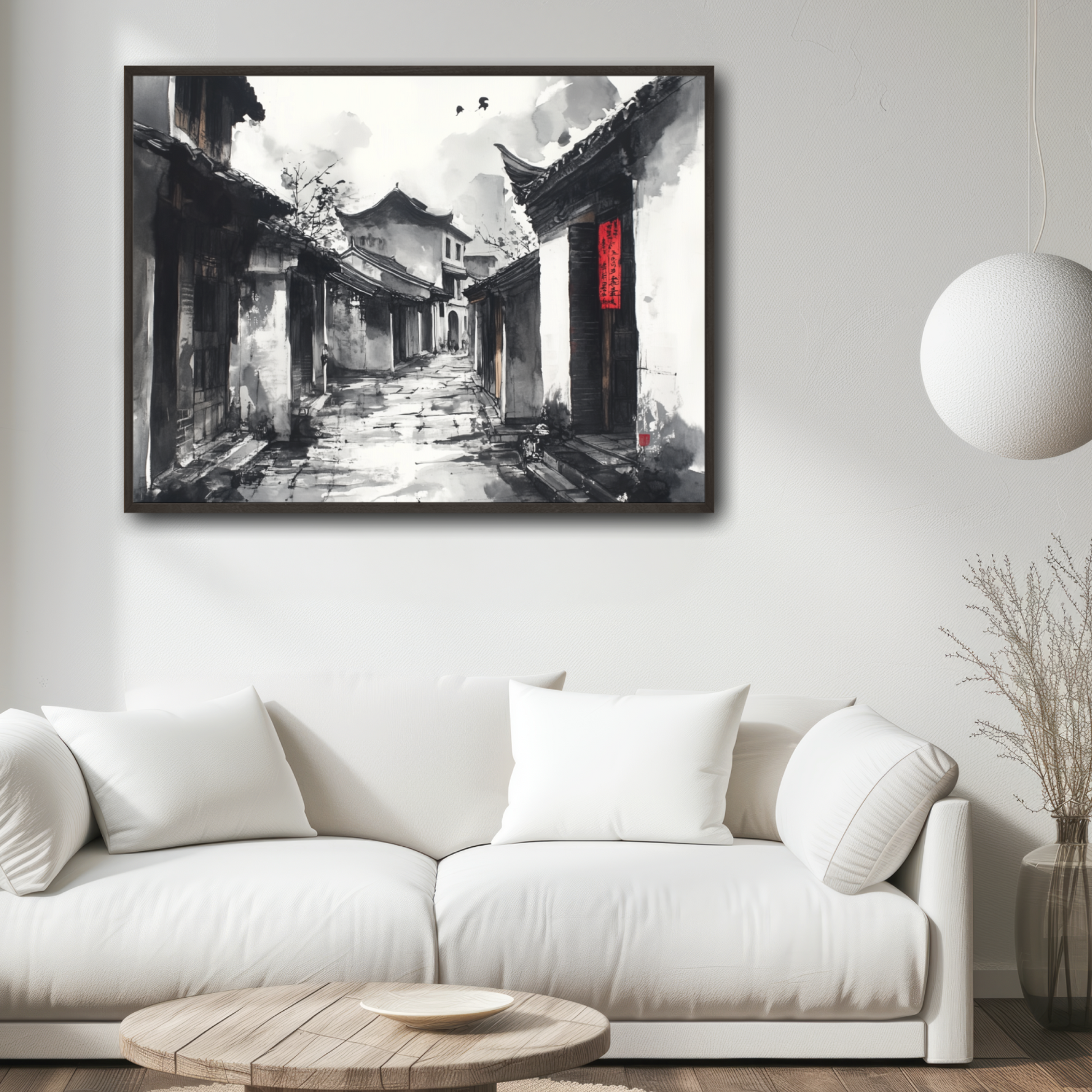 Experience the timeless charm of Chengdu’s Kuanzhai Alley with this ink painting style wall art, capturing the historic essence of one of China’s most beloved cultural districts. Kuanzhai Alley, also known as Wide and Narrow Alley, features traditional courtyard houses, wooden windows, and intricate architectural details that reflect the elegance of the Qing Dynasty. The artwork beautifully portrays the tranquil atmosphere and rich heritage of the three parallel alleys Kuan (Wide), Zhai (Narrow), and Jing (Well) each lined with preserved courtyards and exuding the authentic spirit of old Chengdu. Rendered in expressive ink brushwork, this piece evokes the soft ambiance and artistic legacy of classic Chinese painting. The composition highlights the unique blend of history, culture, and daily life found in Kuanzhai Alley, making it a perfect addition for lovers of Asian art, travel, and architectural beauty. Display this artwork to bring a sense of serenity and cultural depth to your home or office.