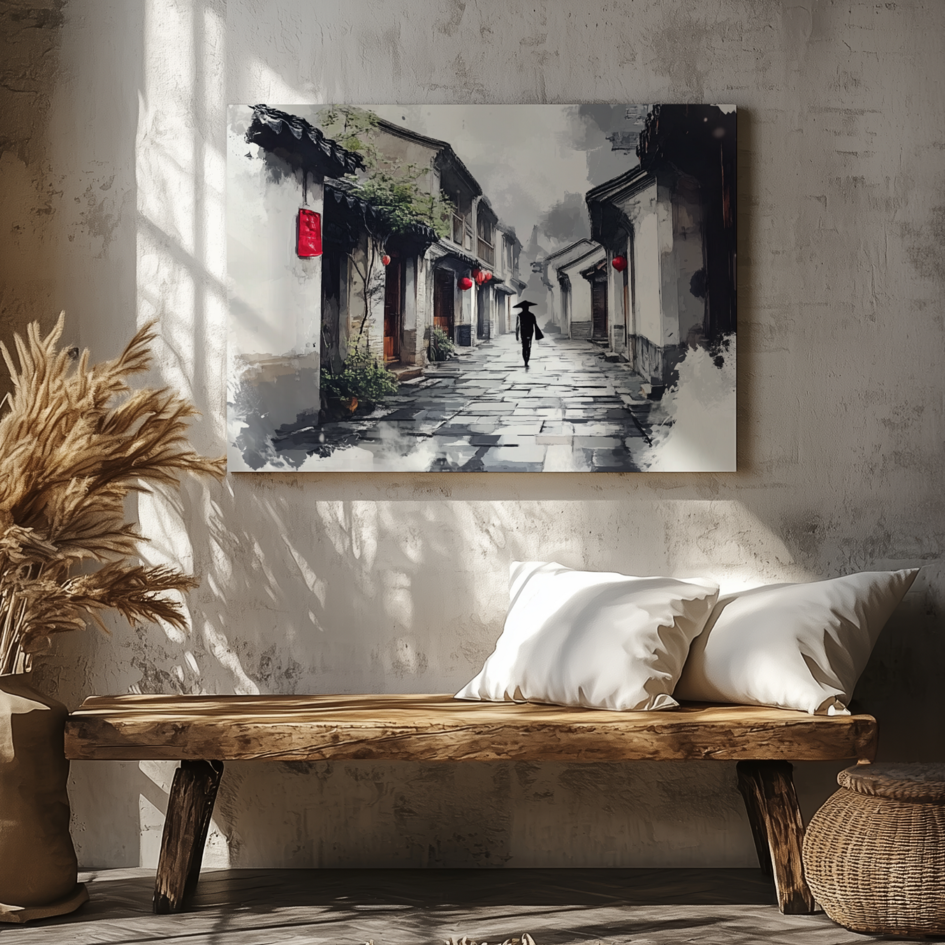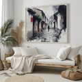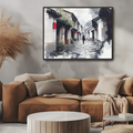 Ancient Japanese Alley Wall Art Ink Painting Style Print. High Resolution Digital Download 300 DPI.