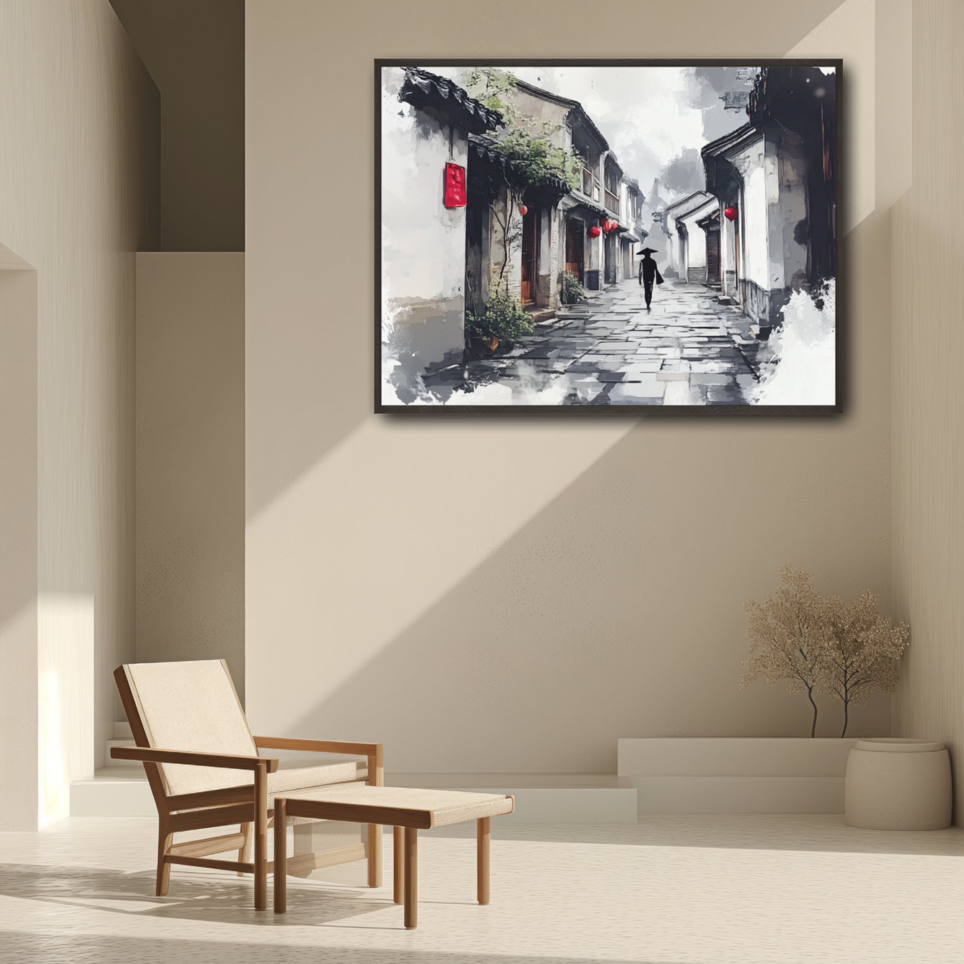 Bring the timeless beauty of Japanese tradition into your space with this exquisite Kuanzhai Alley wall art, rendered in the elegant style of ink painting. This piece captures the historical charm of Chengdu's iconic alleyways through flowing brushstrokes, subtle gradients, and traditional composition. The artwork evokes a serene atmosphere, perfect for any living room, study, or hallway that craves cultural depth and artistic grace. Printed on premium quality materials, this digital ink painting seamlessly blends heritage with modern aesthetics. The minimal yet expressive style makes it a versatile decor element, whether your home embraces contemporary, rustic, or Asian-inspired themes. A perfect gift for art lovers or anyone passionate about traditional Japanese landscapes.
