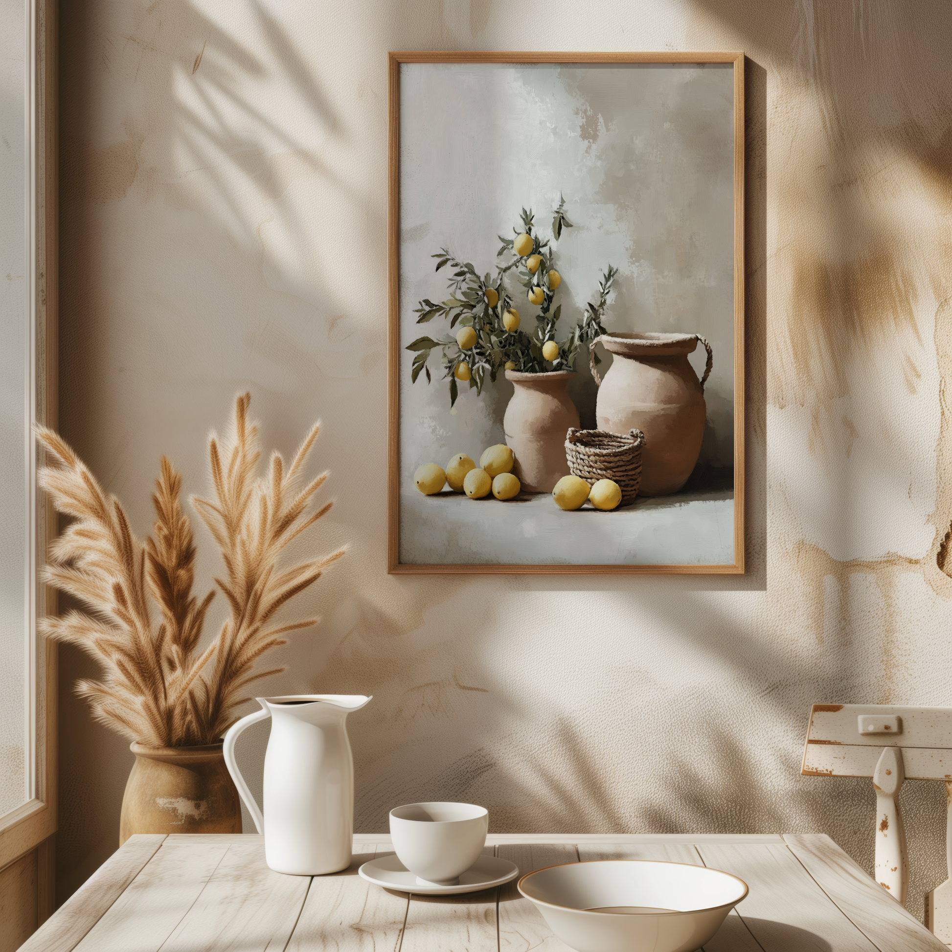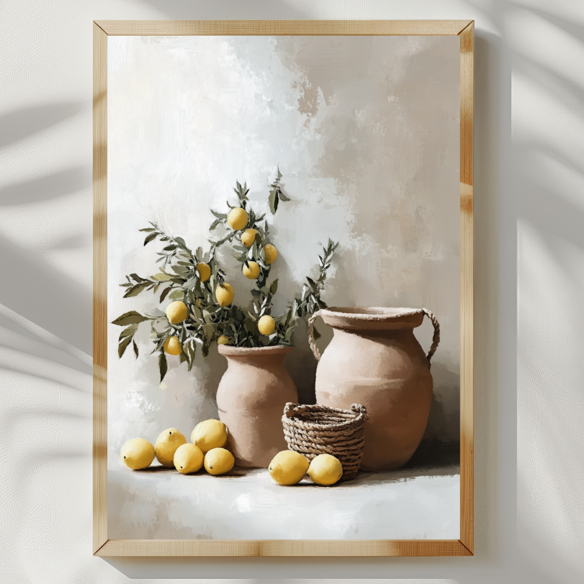 Mediterranean Interior Wall Art Lemons Baskets Terracotta Olive Ceramic Display. High Resolution Digital Download 300 DPI.