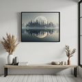 Moonlit Lake Wall Art Pine Trees Mist Reflection Night Tranquil Scene. High Resolution Digital Download 300 DPI.