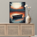 Immerse yourself in the tranquil beauty of this unique pixel art wall piece. A charming small boat floats serenely on a calm lake, perfectly mirrored in the still waters below. The scene is bathed in the warm, golden hues of a glowing sunset, its vibrant colors reflecting off the water's surface in a mesmerizing display. The pixelated style adds a nostalgic, retro charm to the composition, evoking memories of classic video games while capturing the timeless allure of a peaceful lakeside evening. This artwork brings a perfect blend of modern pixel aesthetics and serene natural beauty to your space. The minimalist approach of pixel art combined with the rich, warm colors of the sunset creates a visually striking yet soothing piece. Ideal for gaming enthusiasts, nature lovers, or anyone seeking a unique and calming focal point for their room, this canvas art serves as a daily reminder to pause and appreciate life's quiet moments. Whether displayed in a living room, bedroom, or office, it offers a pixelated window to a world of tranquility and digital artistry.