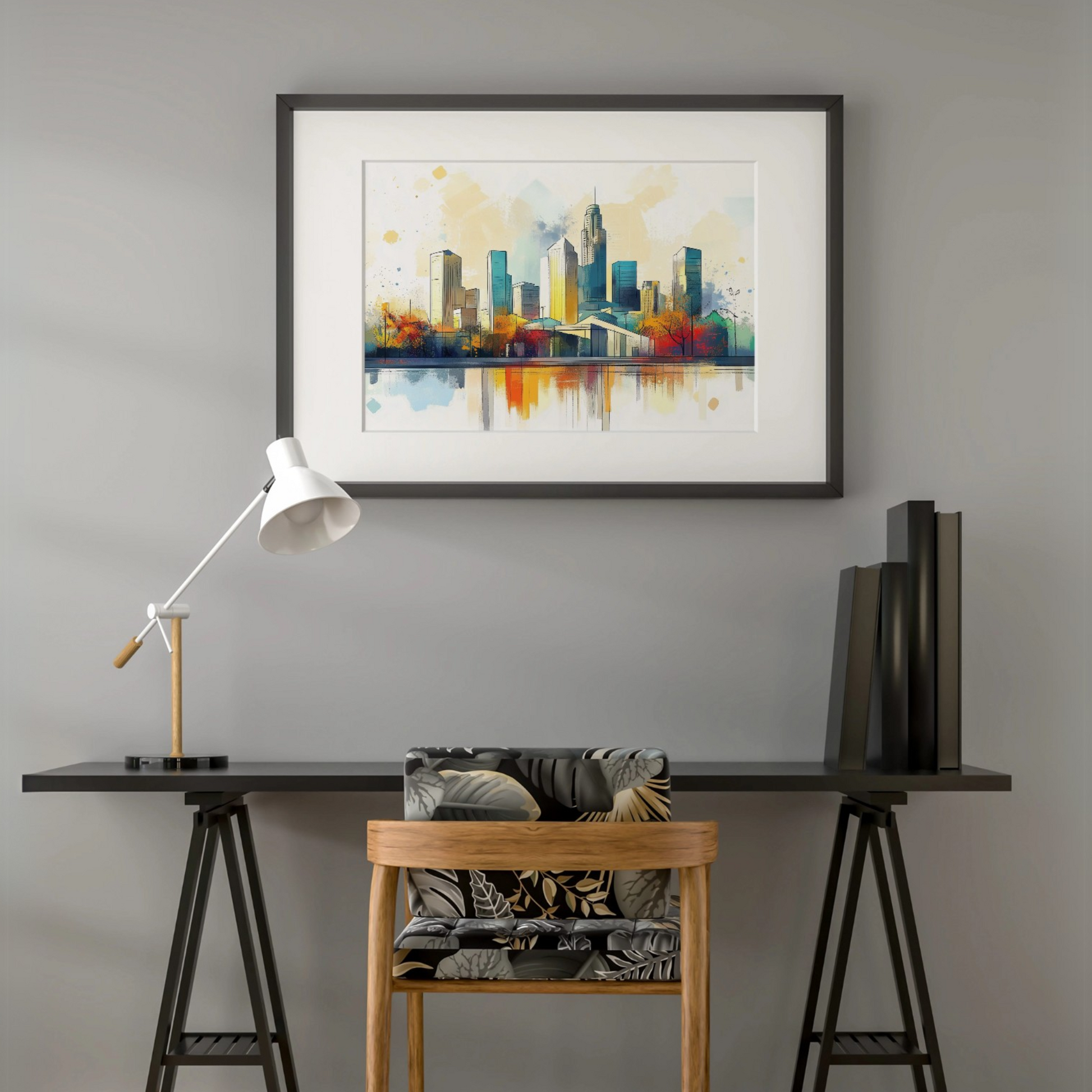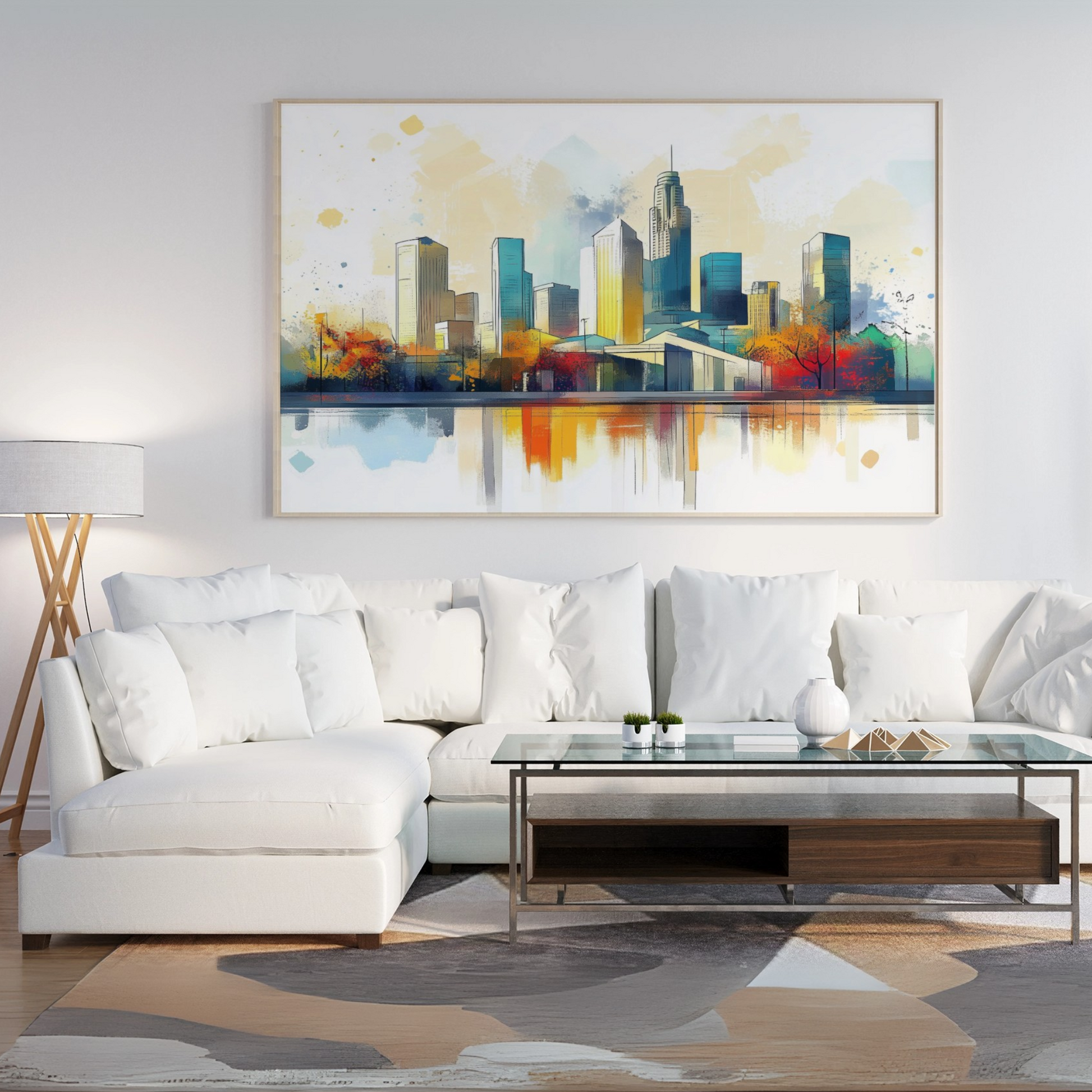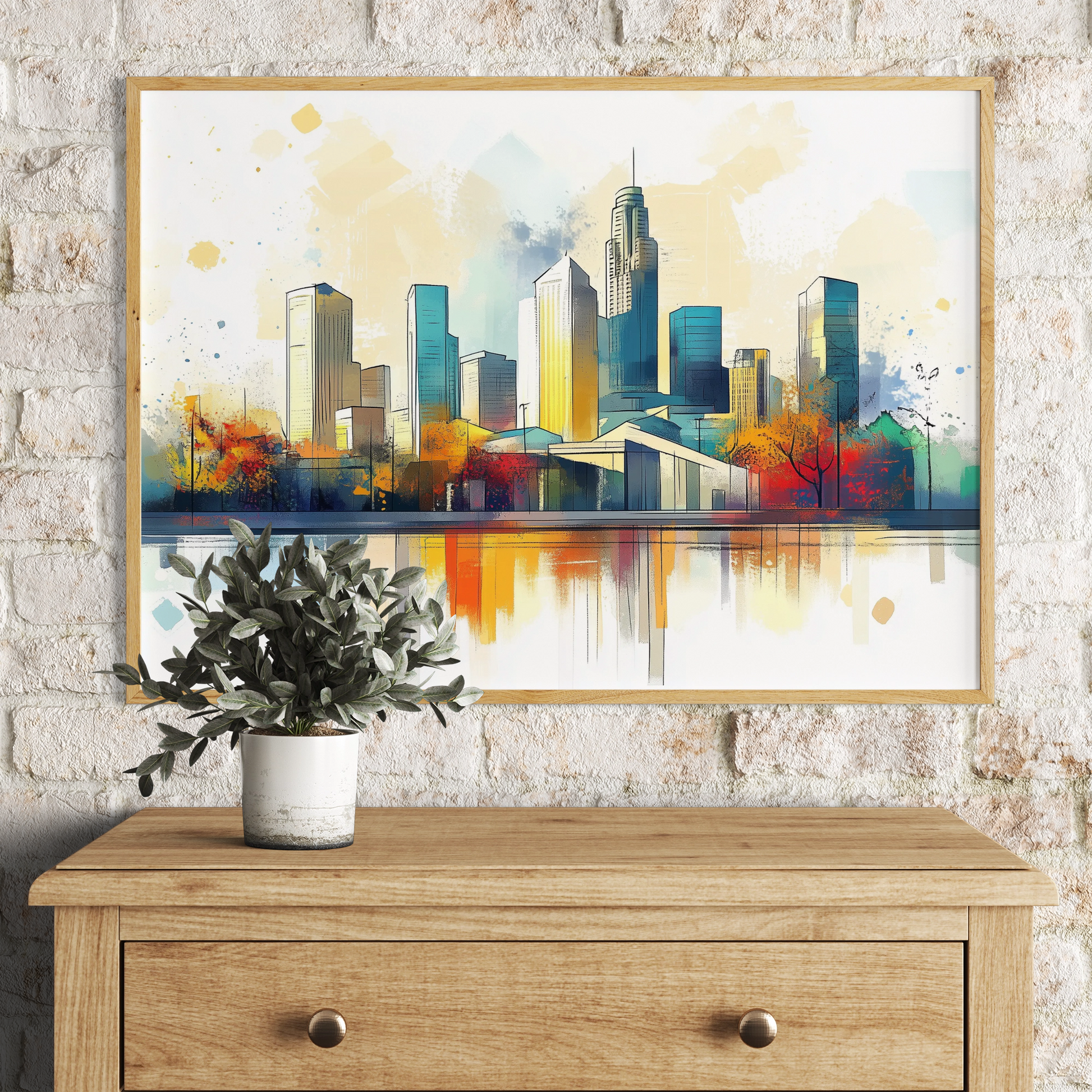 Serene LA Skyline: Elegant Watercolor Cityscape Art Print. High Resolution Digital Download 300 DPI.