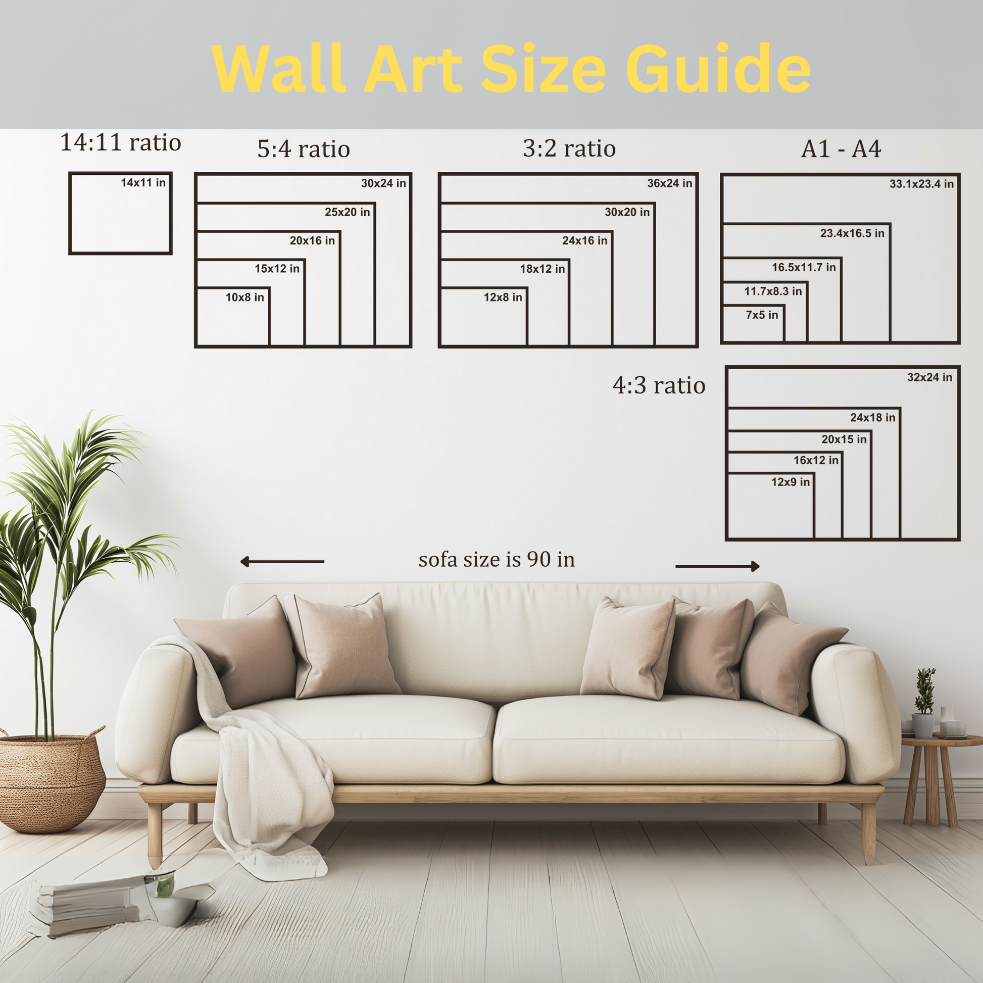 Inches: 5X7, A4 ( 8.25x11.75 ), A3 ( 11.7x16.5 ), A2 ( 16.5x23.4 ), A1 ( 23.4x33.11 )
