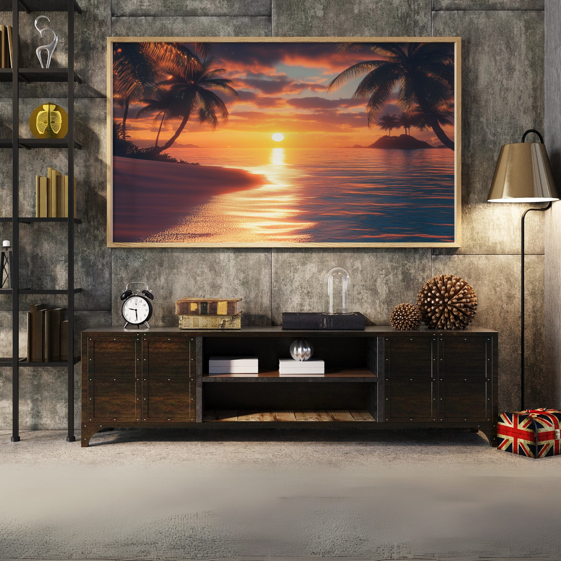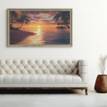 Tropical Paradise Sunset: Realistic Beach Island Palm Trees Canvas Art. High Resolution Digital Download 300 DPI.