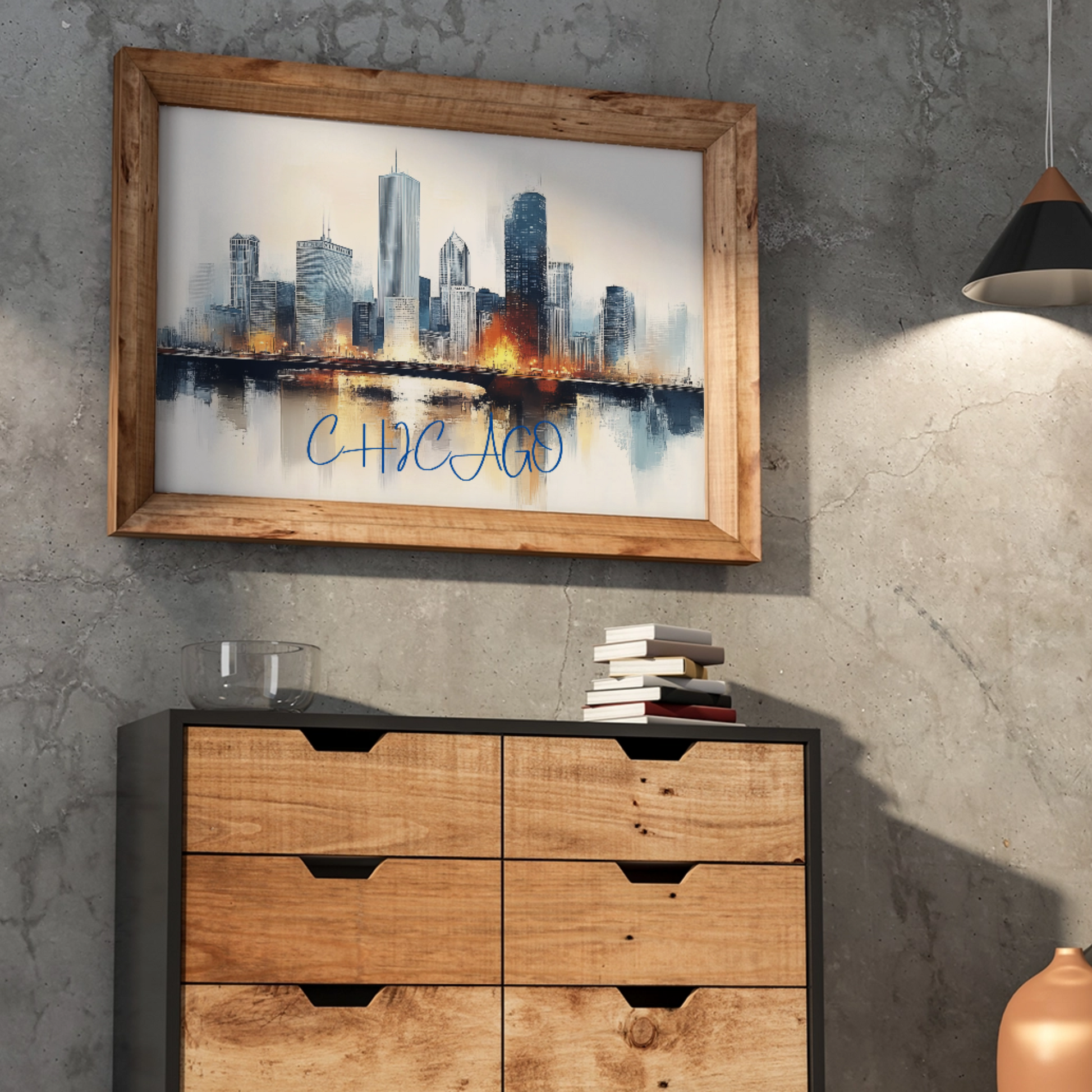 This elegant painting strikes a perfect balance between abstraction and representation, offering a unique perspective on Chicago's urban environment. The classic vintage touch infuses the piece with timeless charm, making it an ideal focal point for any modern or contemporary interior. Whether you're a Chicago native, an art enthusiast, or simply looking to add a touch of urban sophistication to your decor, this abstract cityscape is sure to captivate and inspire.
