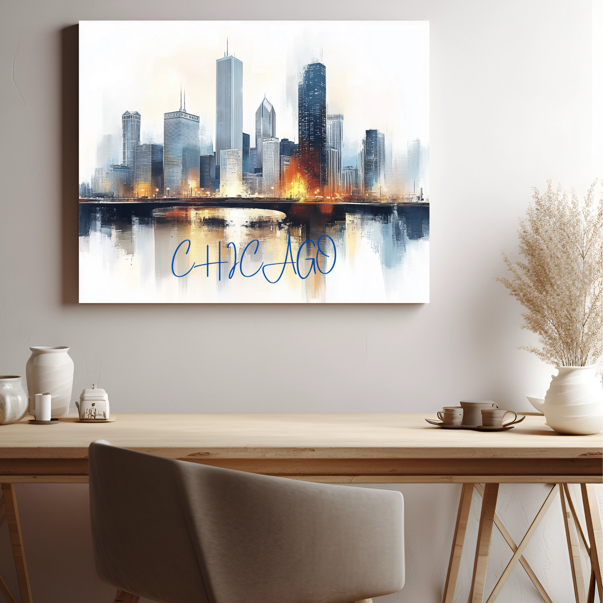 Vibrant Chicago Reflections: Abstract Urban Cityscape Canvas Art Print. High Resolution Digital Download 300 DPI.