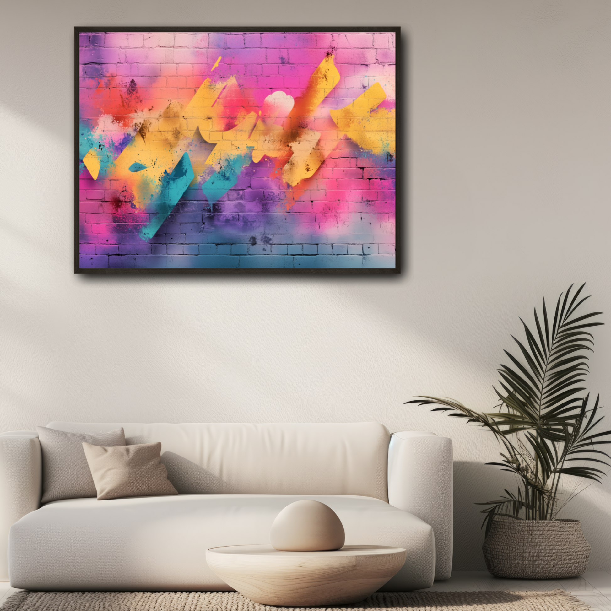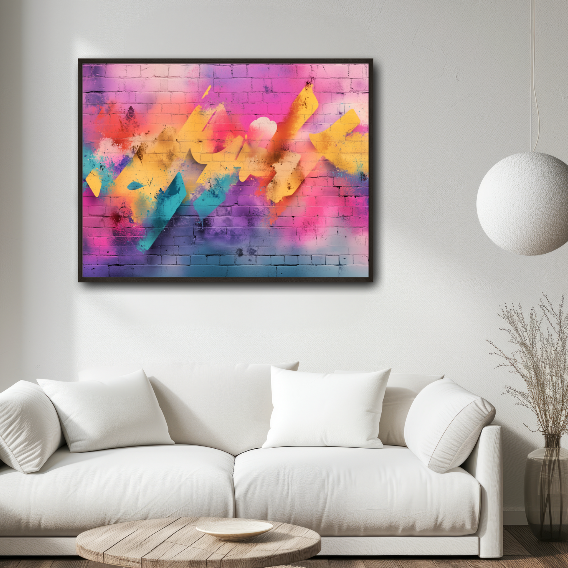 Energize your space with this vibrant graffiti wall art, bursting with color and intricate detail that captures the raw energy of street culture. Bold wildstyle graffiti lettering sprawls across a weathered brick wall in vivid shades of pink, yellow, green, purple, red, orange, and white, forming a dynamic and expressive composition. The high-resolution vector illustration showcases complex patterns and layered designs, reflecting the creativity and movement found in urban environments. Every inch of the artwork is richly detailed, combining the spirit of street art with modern digital precision. The interplay of color, texture, and form creates a lively, uplifting atmosphere, making this piece perfect for anyone who appreciates urban art, contemporary design, or the cultural impact of graffiti. Transform your home, office, or creative studio with a statement piece that embodies the life and vibrancy of the city.