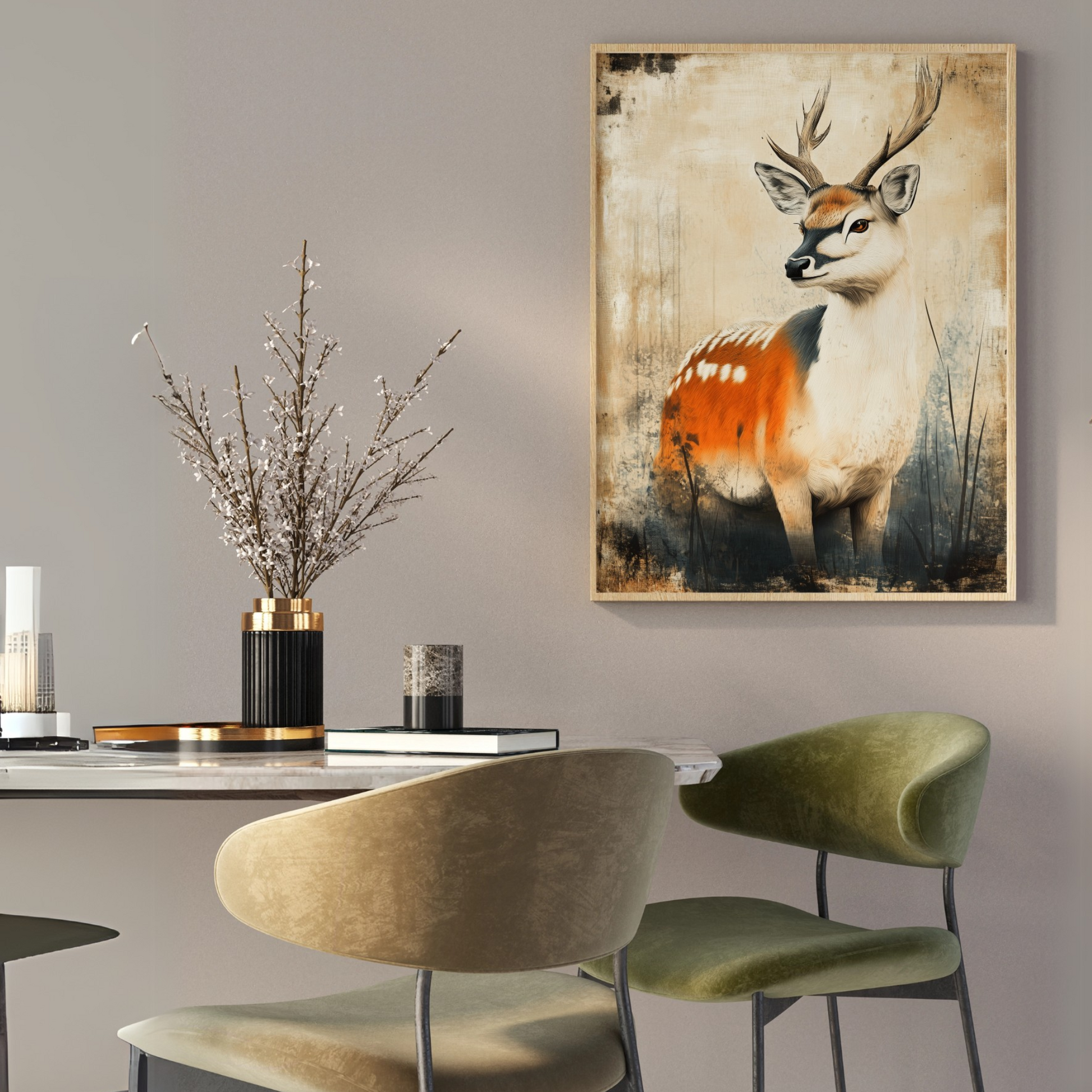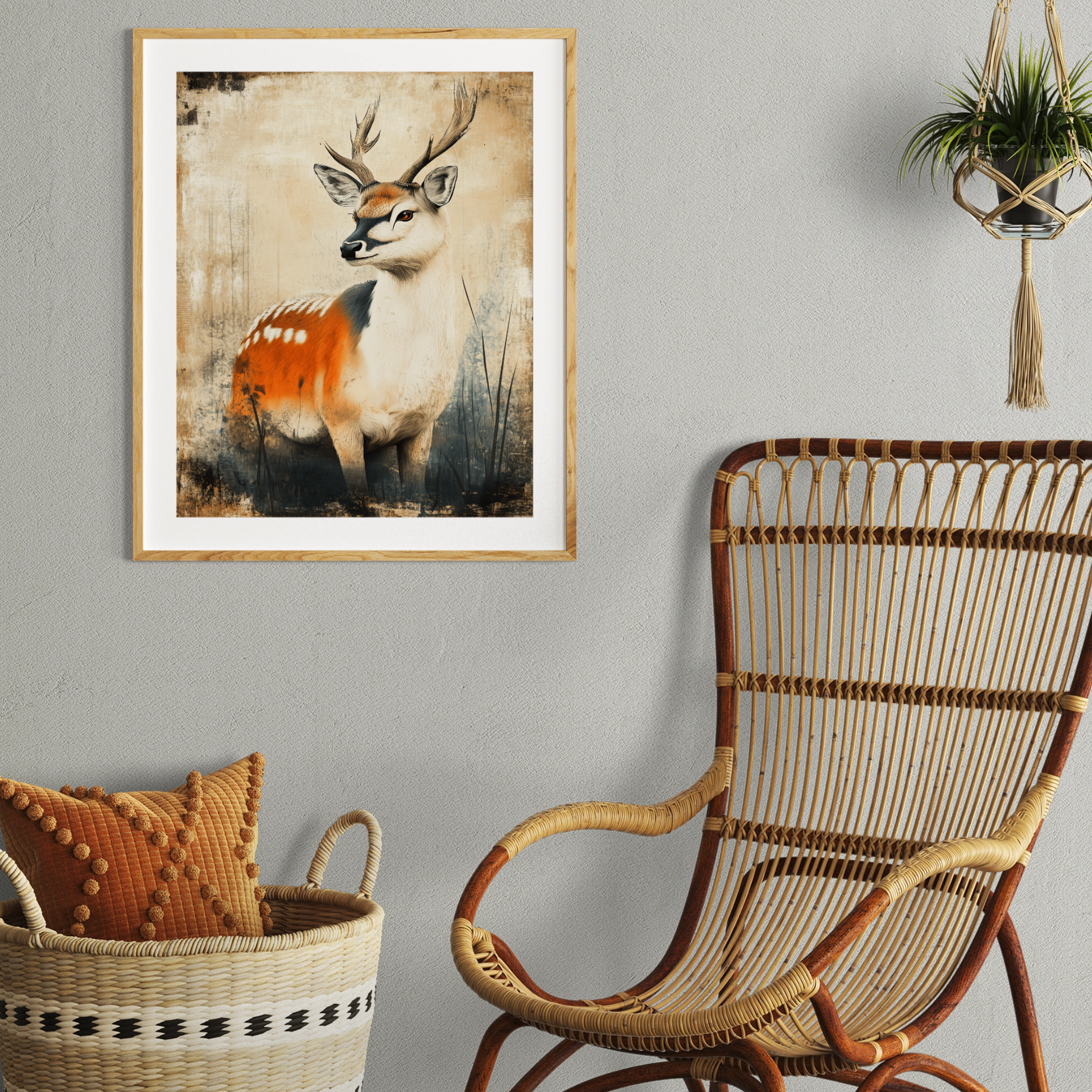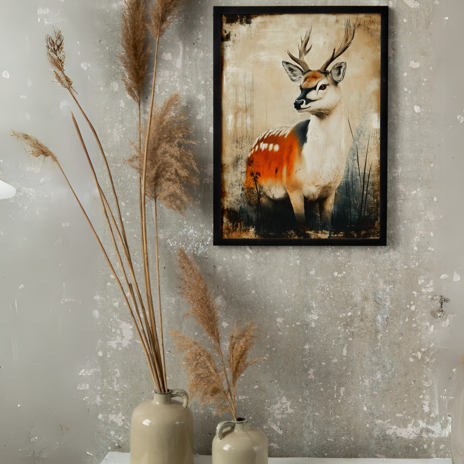 Bring the beauty of nature indoors with this stunning watercolor deer portrait canvas print. The artist's masterful use of vibrant hues breathes life into the majestic creature, capturing its gentle essence and wild spirit. Splashes of color dance across the canvas, creating a harmonious blend of realism and artistic expression that will captivate viewers and add a touch of whimsy to any room. This eye-catching piece is perfect for nature enthusiasts, art lovers, and anyone looking to infuse their space with color and character. The high-quality canvas ensures that every brushstroke and color gradient is faithfully reproduced, resulting in a durable and long-lasting artwork. Whether displayed in a living room, bedroom, or office, this colorful deer portrait serves as a striking focal point, inviting conversation and admiration while bringing a sense of the outdoors to your interior decor.